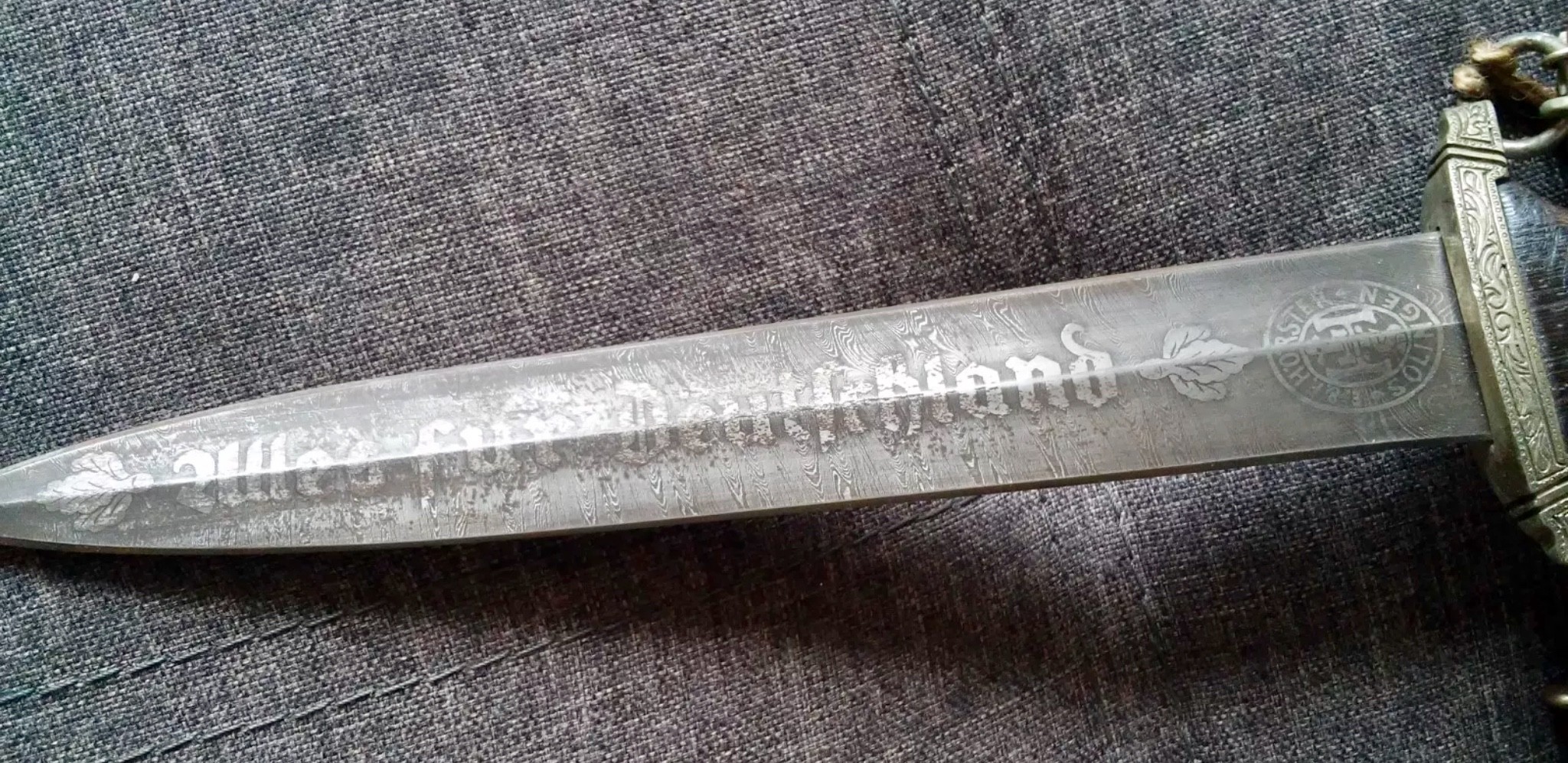Там написано "Бригадефюреру Гутенбергеру во имя товарищества. СА Фюрер Бригады 73" На другой стороне текст "Всё за Германию"