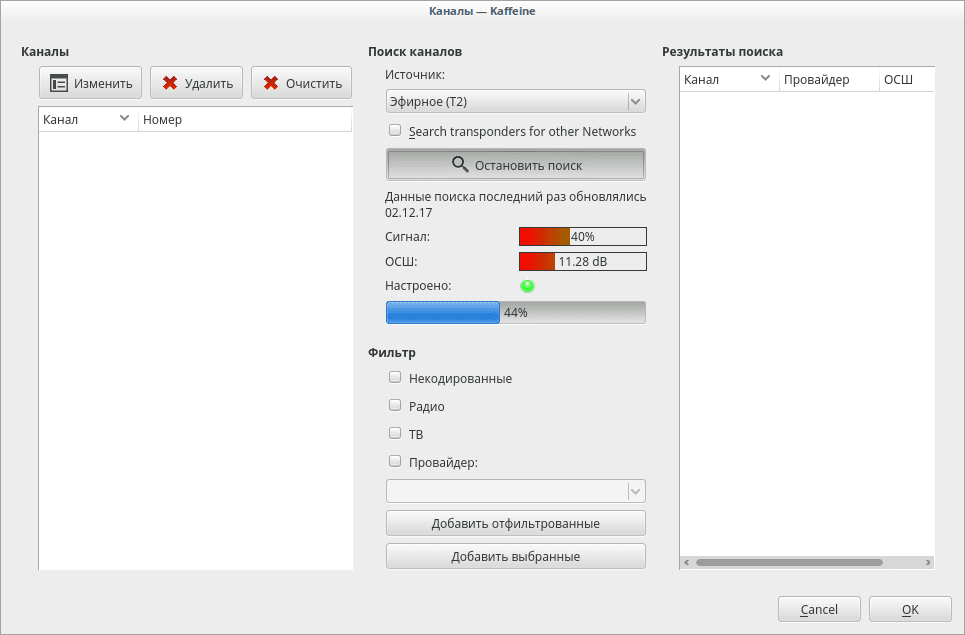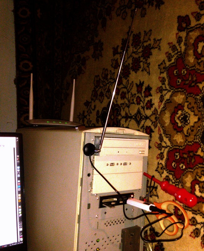 Приехала свистулька. Что радует — в моем линуксе дрова на нее искаропки, никаких плясок с бубном не требуется. Напустил на нее сканер из чорной консоли. Сканер опознал железяку влет, и она ему очень понравилась. Аж смайлики нарисовал: Код: Info: using DVB adapter auto detection. /dev/dvb/adapter0/frontend0 -> TERRESTRIAL "Realtek RTL2832 (DVB-T)": good :-) /dev/dvb/adapter0/frontend1 -> TERRESTRIAL "Panasonic MN88473": very good :-)) Но, увы, на штатный «гвоздик» ни одной станции не поймал. То ли лыжи не едут на гвоздик таки не ловится в моем частнике, то ли кто-то из них дохлый — свисток/антенна.