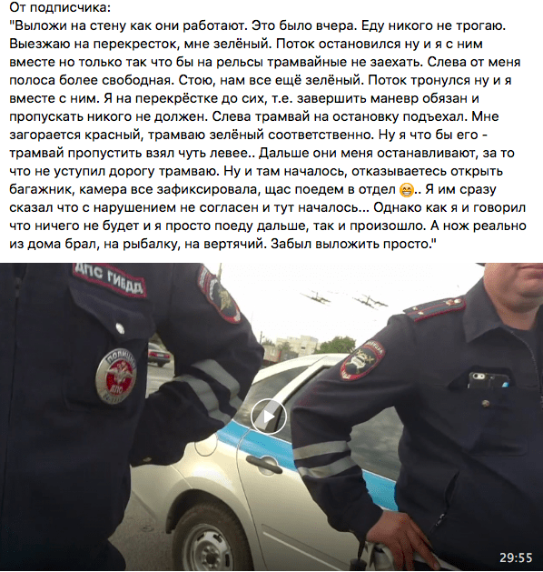 1. Выехал под затор на перекрестке, (раз). 2. нож "забыл" (два). Нарушать не надо, на тридцать минут видео как сам встал в позу. из-за отсутствия сознательности и нарушения правил пдд. Ходят по подъездам переписывают жильцов в квартирах, в связи с усилением к ЧМ, говорят : Вы..Вы.. Спасибо.. До свидания. Они тоже люди подневольные и (..залетные). Напротив работы у меня стоит залетный пост ДПС, тормозят каждые пять минут, 99% показав документы, багажник и бардачек, уезжают сразу же. А если вот так своим лбом биться, надо хорошо подумать что крепче.