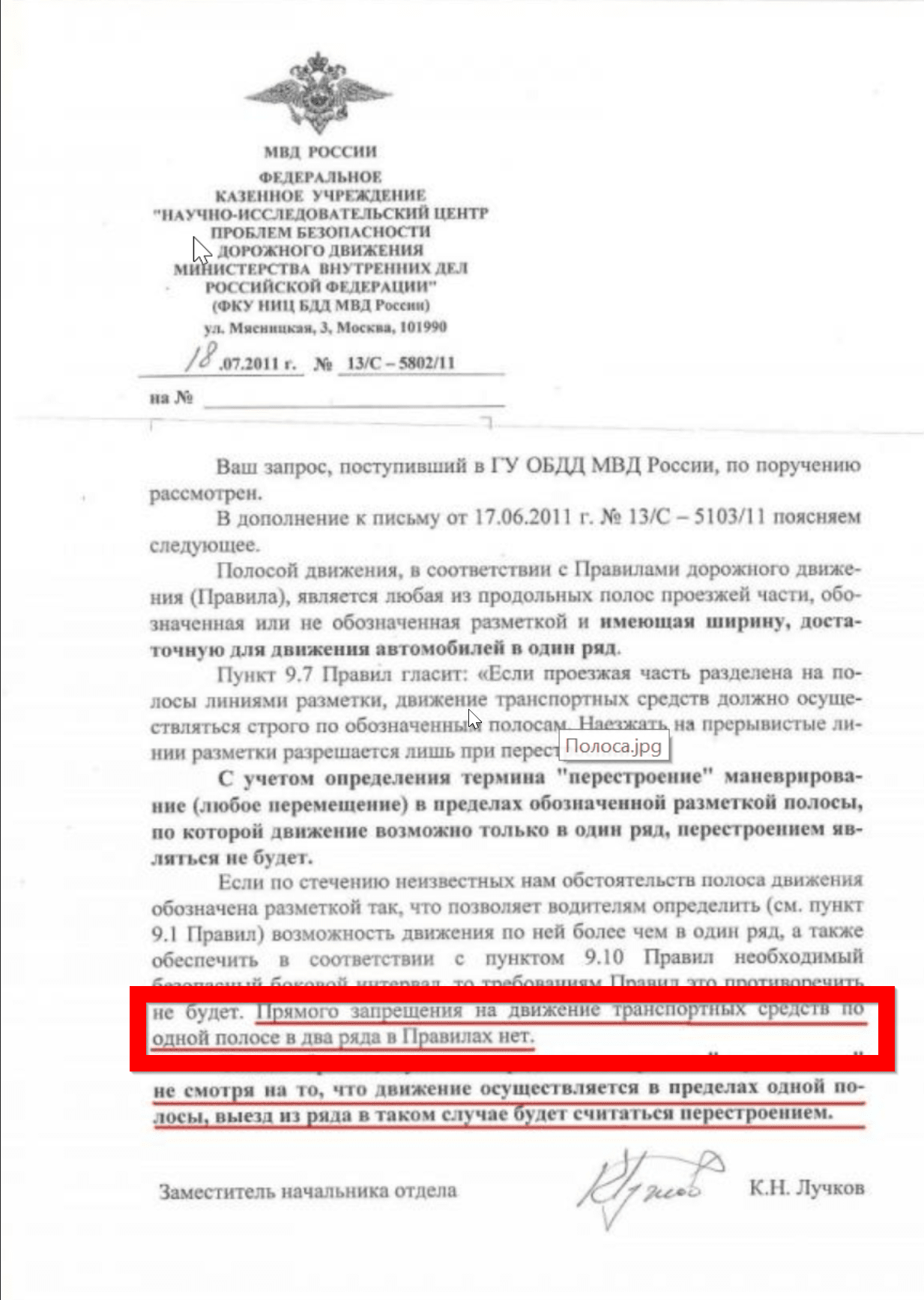 @out, Я понимаю это так, что если полоса обозначена разметкой, то двигаться в ней полагается в один ряд