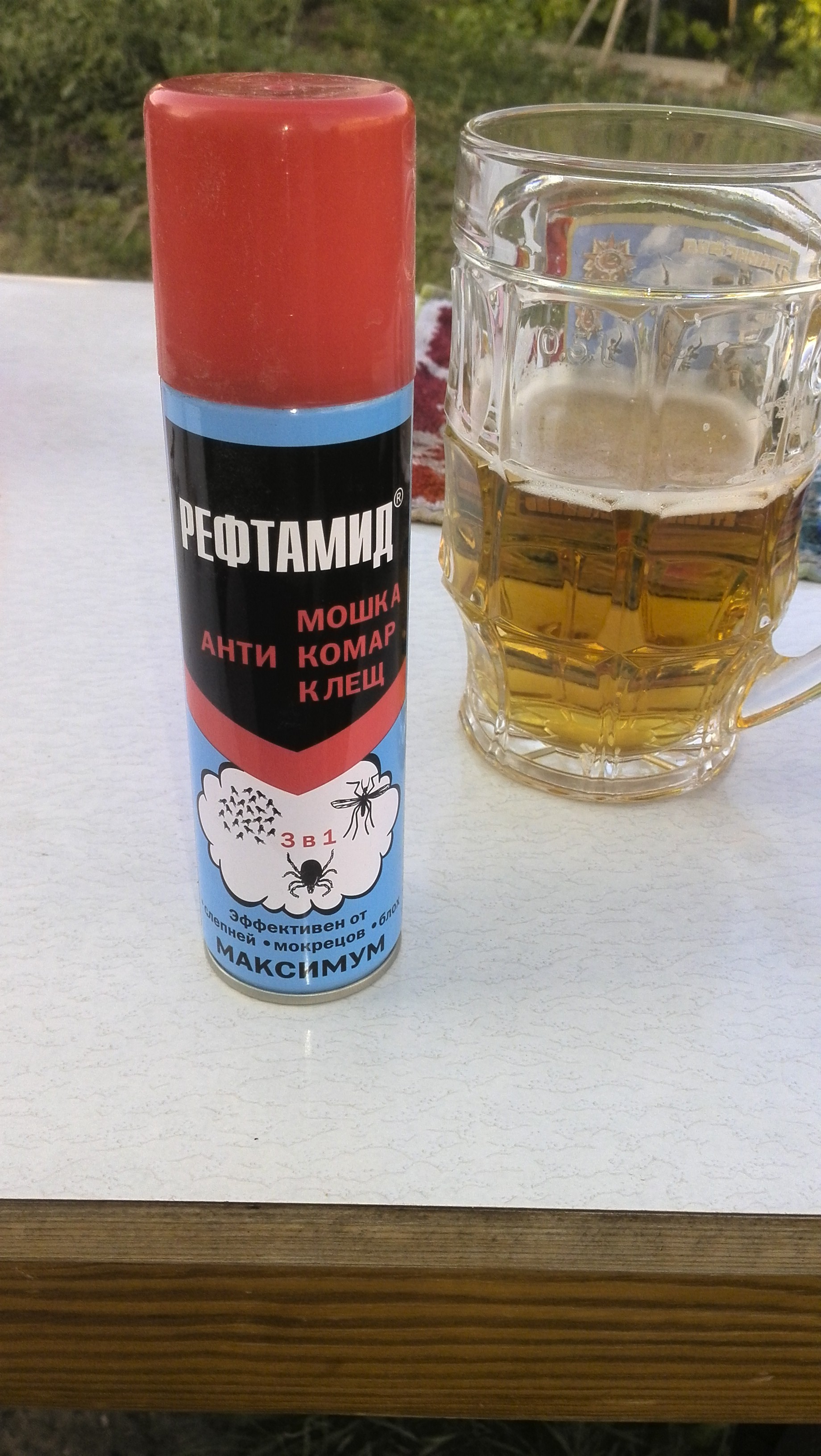 У Вас на фото хоть и синий, но 3в1 и с большим черным треугольником. Как он спасает не могу сказать. У меня синий рефтамид с меленьким красным треугольником и не 3в1, а 5в1, вот этот точно спасает ом мошки, пользуюсь каждый день.