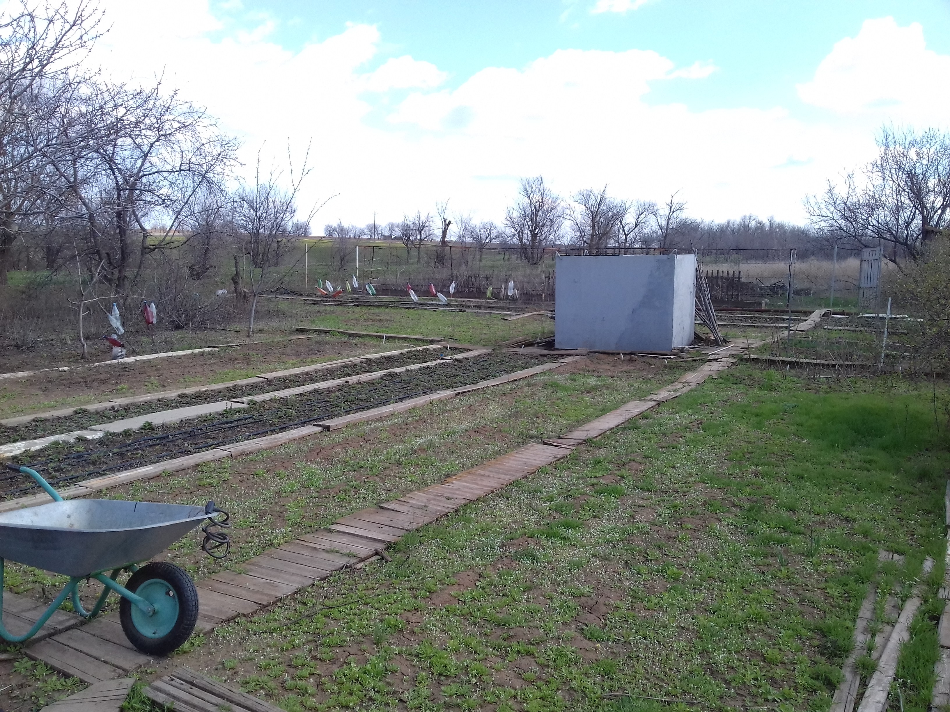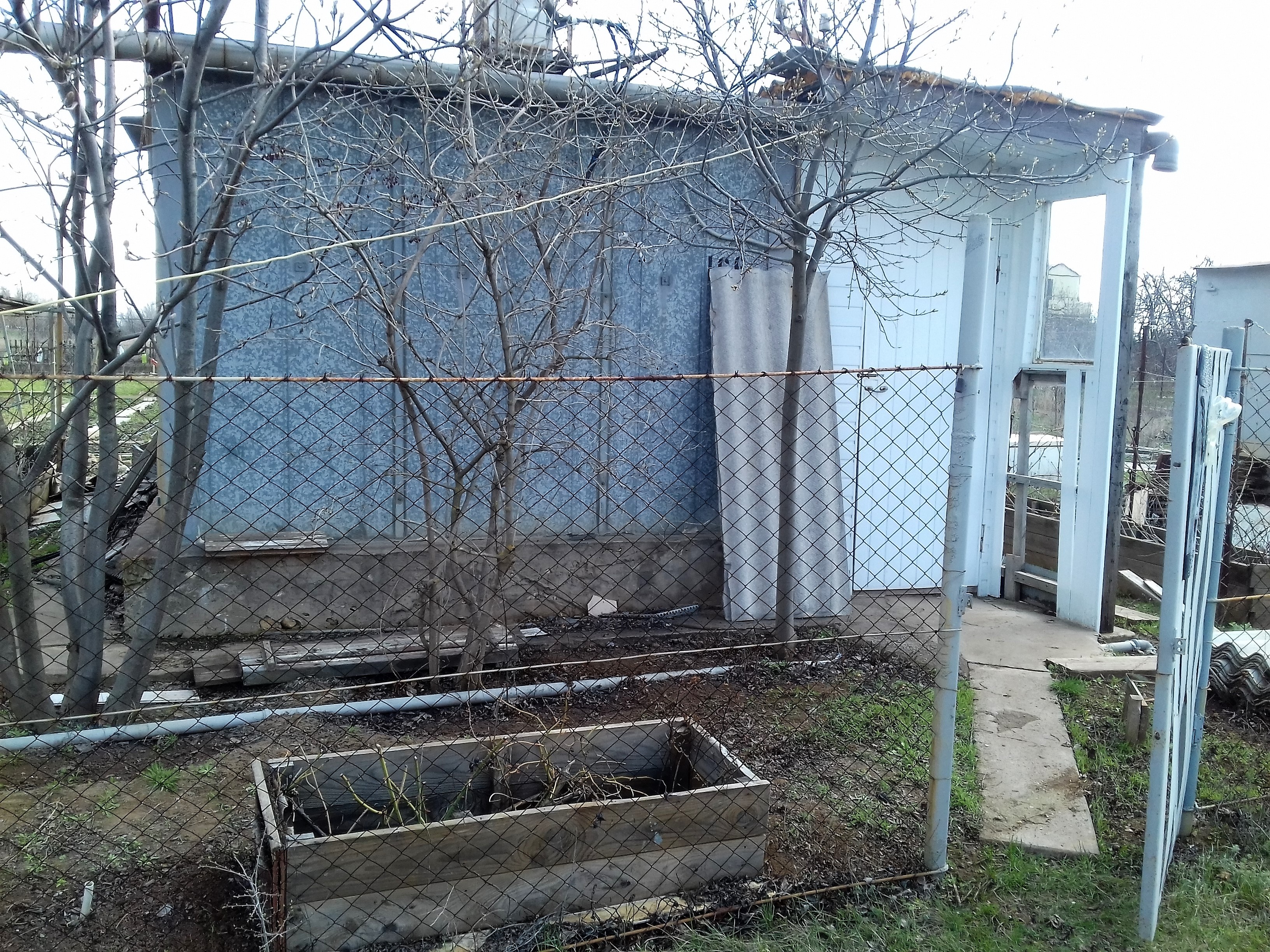 В СТН Мичуренец (Сразу за пос. "Майский). От Горной Поляны - 25км. Рядом с Водохранилищем (50 м). Два участка 6 сот и 7,4 сот. Объединены в один, огорожены забором. На участке обустроенный вагончик, есть электричество. Газовая плита работает от баллона. Установлена сплит-система. Двуярусная кровать, холодильник, микроволновка. Так же на участке металлический запираемый бокс для инструментов, емкость для воды, туалет. Есть весь набор сельхоз инструмента, в том, числе, электрические триммеры, опрыскиватели, электрический мото-культиватор "Надежда-2".