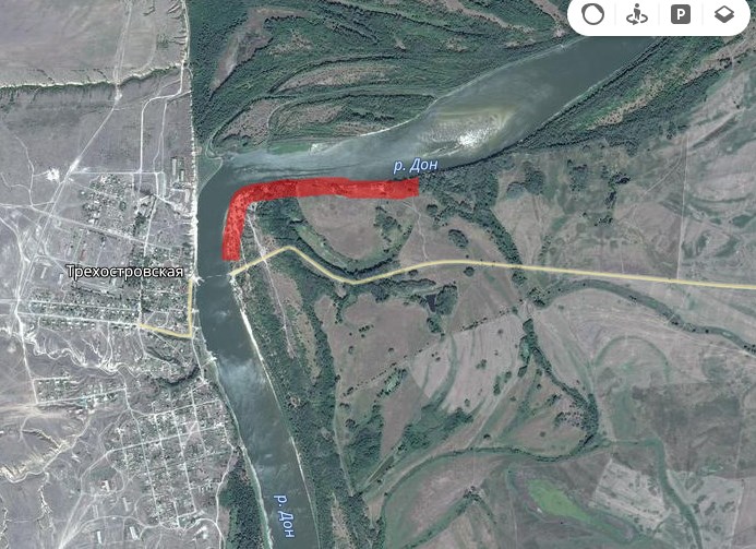 Она на обрывистом берегу. Пологий этот. Лодку надо и на остров... Там мест... И ежевика, и кабаны.... А вообще, по той стороне есть дорога до Сиротинской. И там мест полно. Но если пройдёт дождь, то на моноприводе ловить нечего