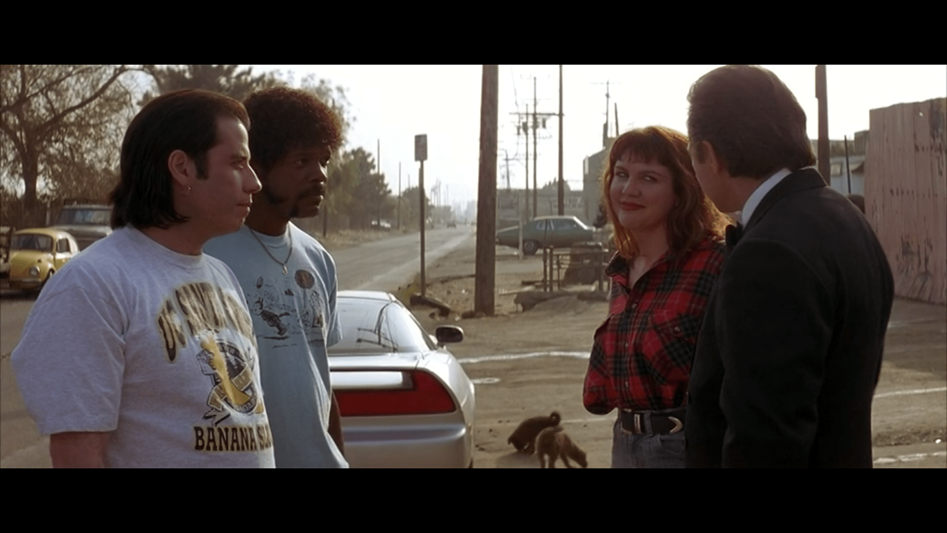 Кстати, в штатах, пока они не двинулись на почве либерастии, всё было, как у нас. Я в смысле собачек в промзоне. Кадр из культовой фильмы «Криминальное чтиво». (А у меня, маленькая, но радость — один из двух оставшихся котов-нахлебников явился сегодня к крыльцу, жив-здоров. Я уж думал, погиб.)