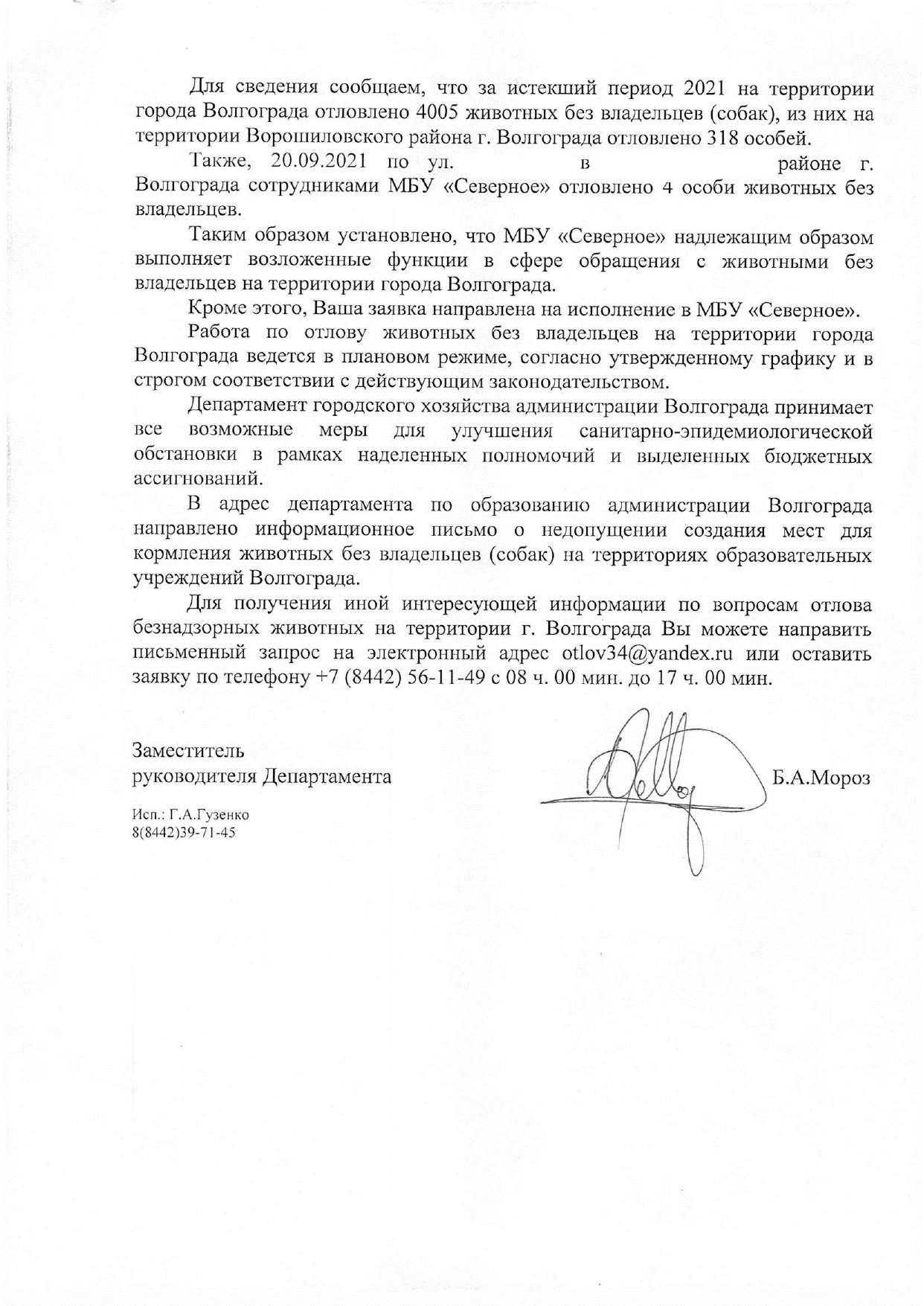 По многочисленным заявкам: ответ прокуратуры на обращение моего покусанного сына (справка из травмпункта прилагалась). Прокурорские переслали жалобу в ДГХ, ДГХ - в МБУ "Северное".