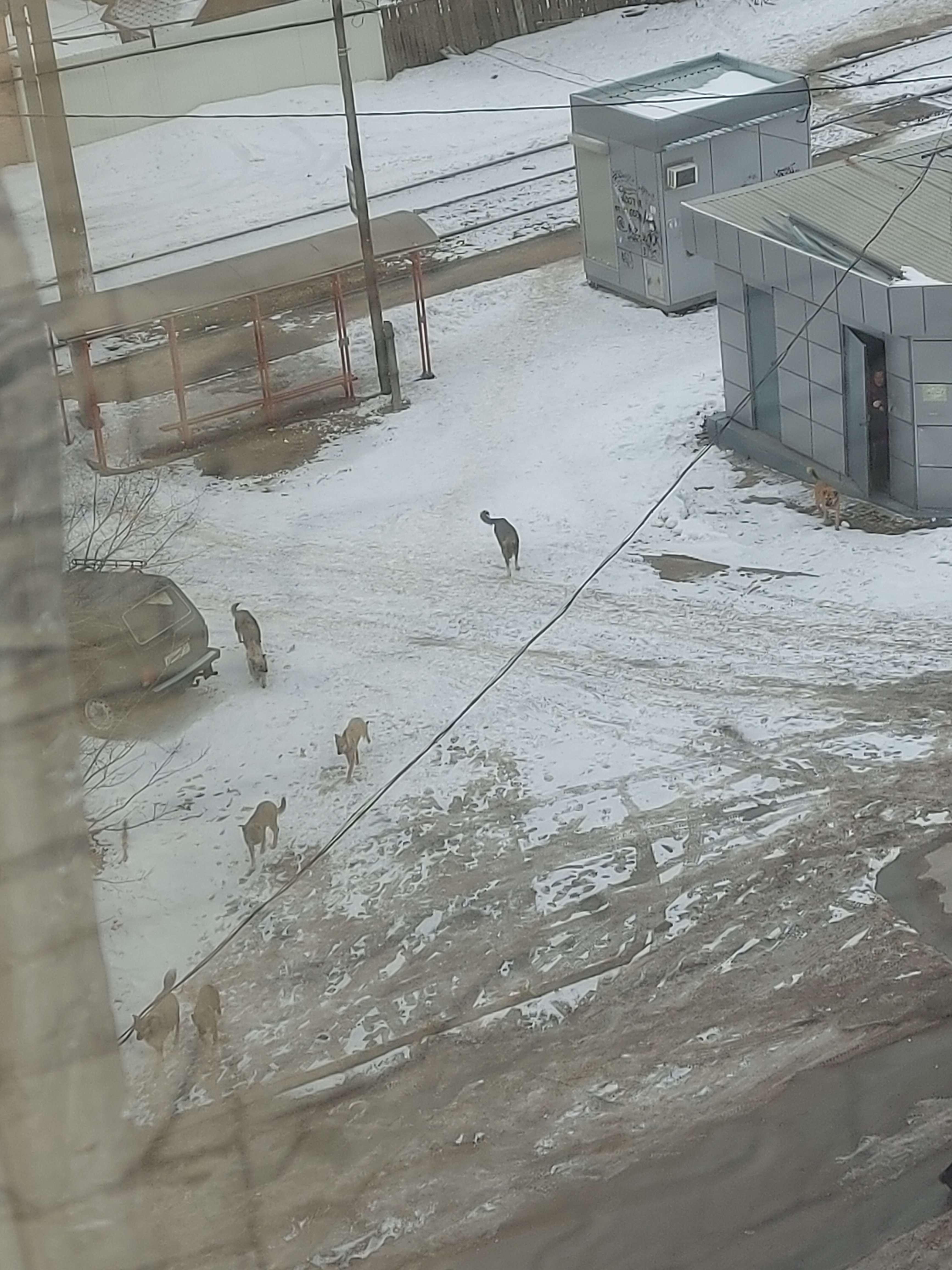 Трамвайная остановка Буханцева. И это не все на фото, в общ.сложности штук 15, часть уже убежала дальше и за трамвай, пока я лезла за телефоном. Причем все размером с овчарку, это звездец, товарищи. Псиноград во всей красе. @milla, возможно это часть тех, кто вашего ребенка покусала, они и до липецкой гоняют, тут недалеко.