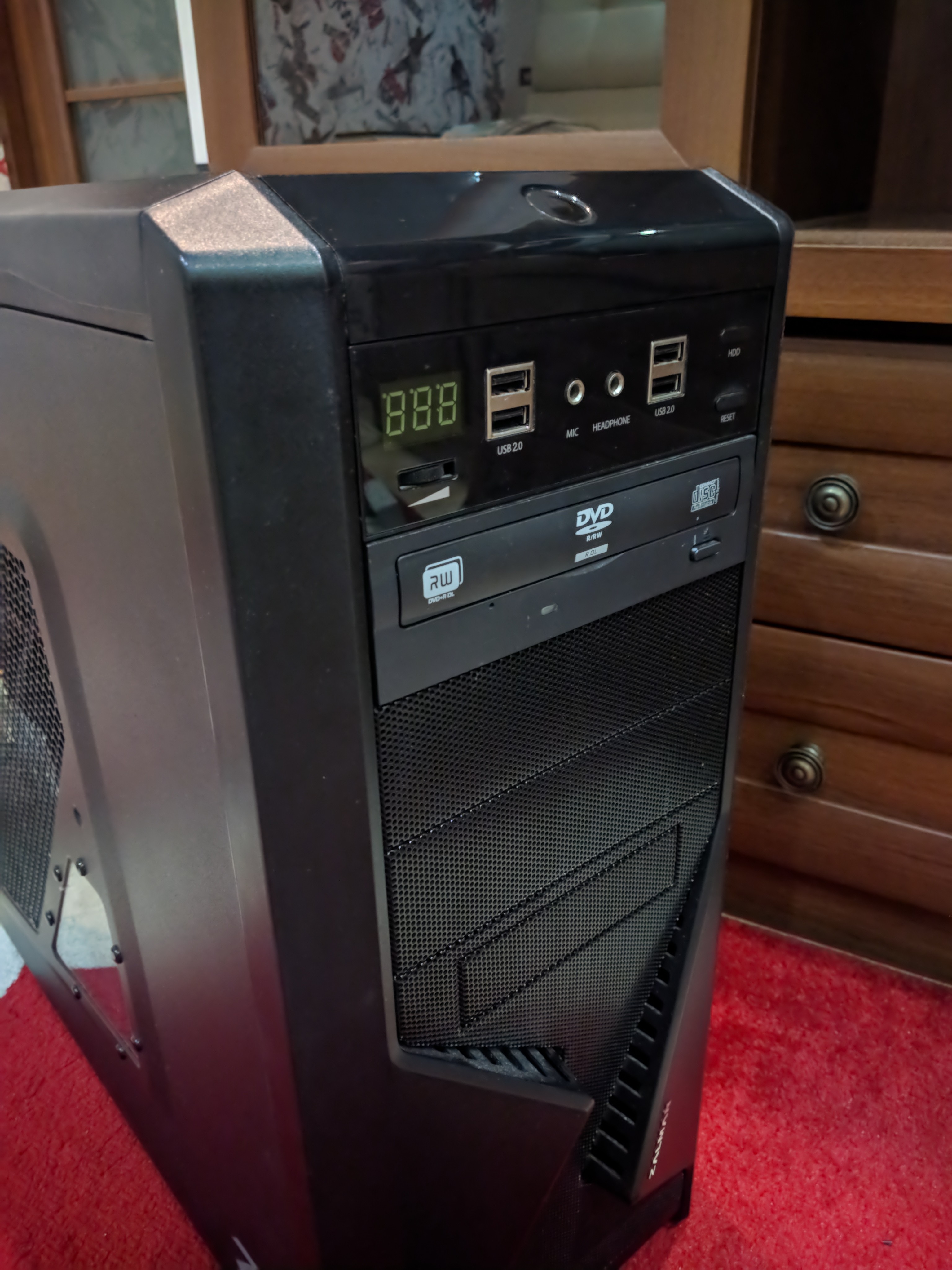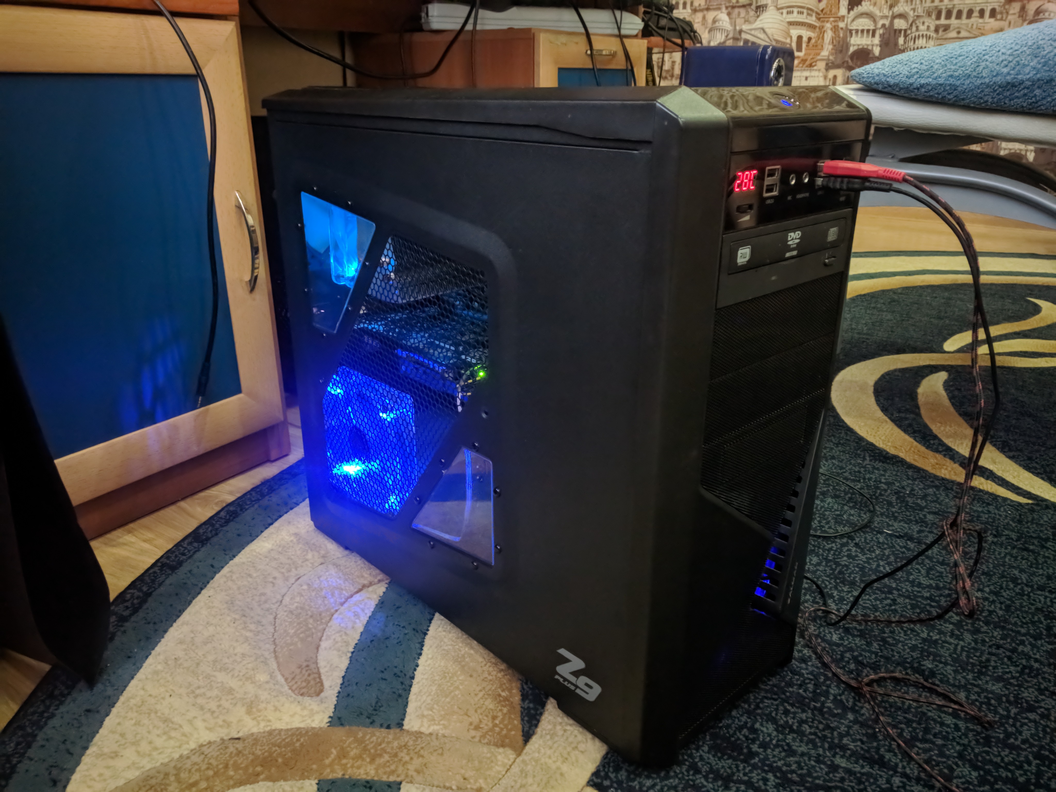 Корпус в отличном состоянии. В корпусе 4 вентилятора, три из них светятся синим цветом. Также в корпусе установлен датчик температуры. Хочу 3000р
