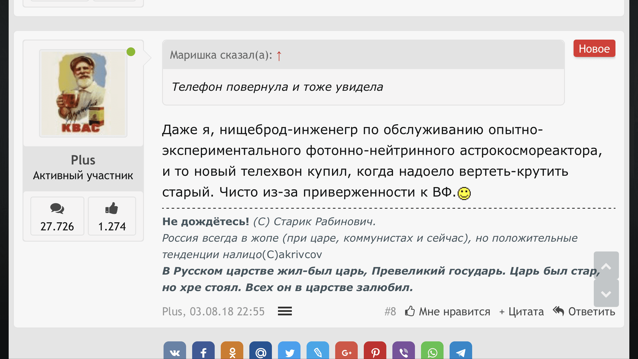 Даже я, нищеброд-инженегр по обслуживанию опытно-экспериментального фотонно-нейтринного астрокосмореактора, и то новый телехвон купил, когда надоело вертеть-крутить старый. Чисто из-за приверженности к ВФ.