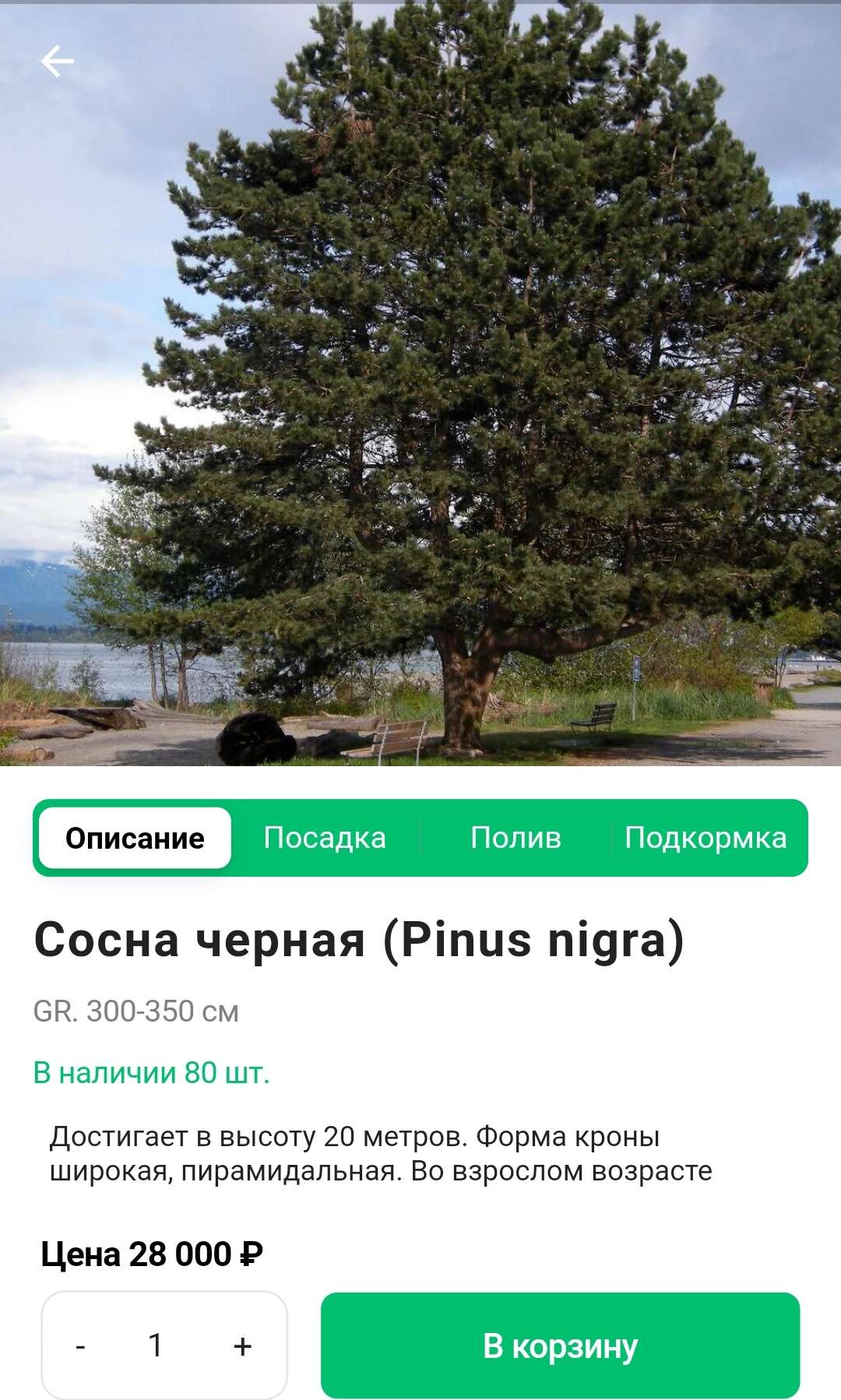 Скачал приложение питомника "Земляника". У них есть в наличии 3-х метровые саженцы. Не, ну круто конечно)