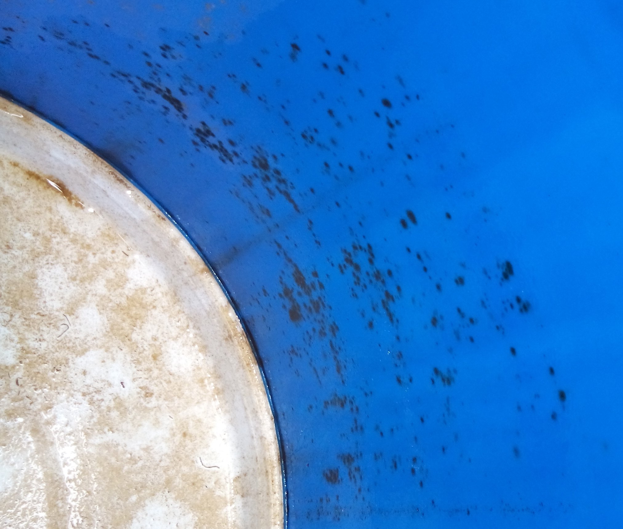 Она заливается под контролем до перелива (не вижу проблемы, т.к. когда идут дожди, воды на крышу попадает намного больше), а потом бочка закрывается, и пользуемся холодной водой из центрального водопровода (через фильтр) до момента, пока воду там не отключат. Нет "автоматики" - но мне так проще. Напор, конечно, отличается - тогда есть неудобства только при купании днем в момент, когда холодная вода идет из водопровода (приходится дольше регулировать смеситель). Больше никаких проблем нет, обратного потока нет. Этот сезон 7-й по счету, когда мы пользуемся этим водонагревателем. За это время только два раза меняли смеситель на раковине (один из них просто брался за 300 руб. на один сезон), один раз смеситель у душа, клапан между фильтром и хоз.блоком и фильтр, т.к. однажды осенью в октябре были сильные морозы, которые не ждали, и они разрушили всё перечисленное. Колбу фильтра после этого я теперь снимаю всегда, когда уезжаем с дачи, а осенью за погодой слежу на неделю вперед. Водонагреватель не разбирал ни разу. На зиму только спуск воды, как описано на схеме. Мы не любим купаться в "болоте"... Вот то, что образуется на стенках и дне бочки за две недели после её помывки, если нет фильтра и не пользоваться никакой химией (фото сделаны давно, конечно, но белая ткань, обматывающая картридж фильтра, за сутки становится в зависимости от разных дней от буро-коричневой до зеленой):
