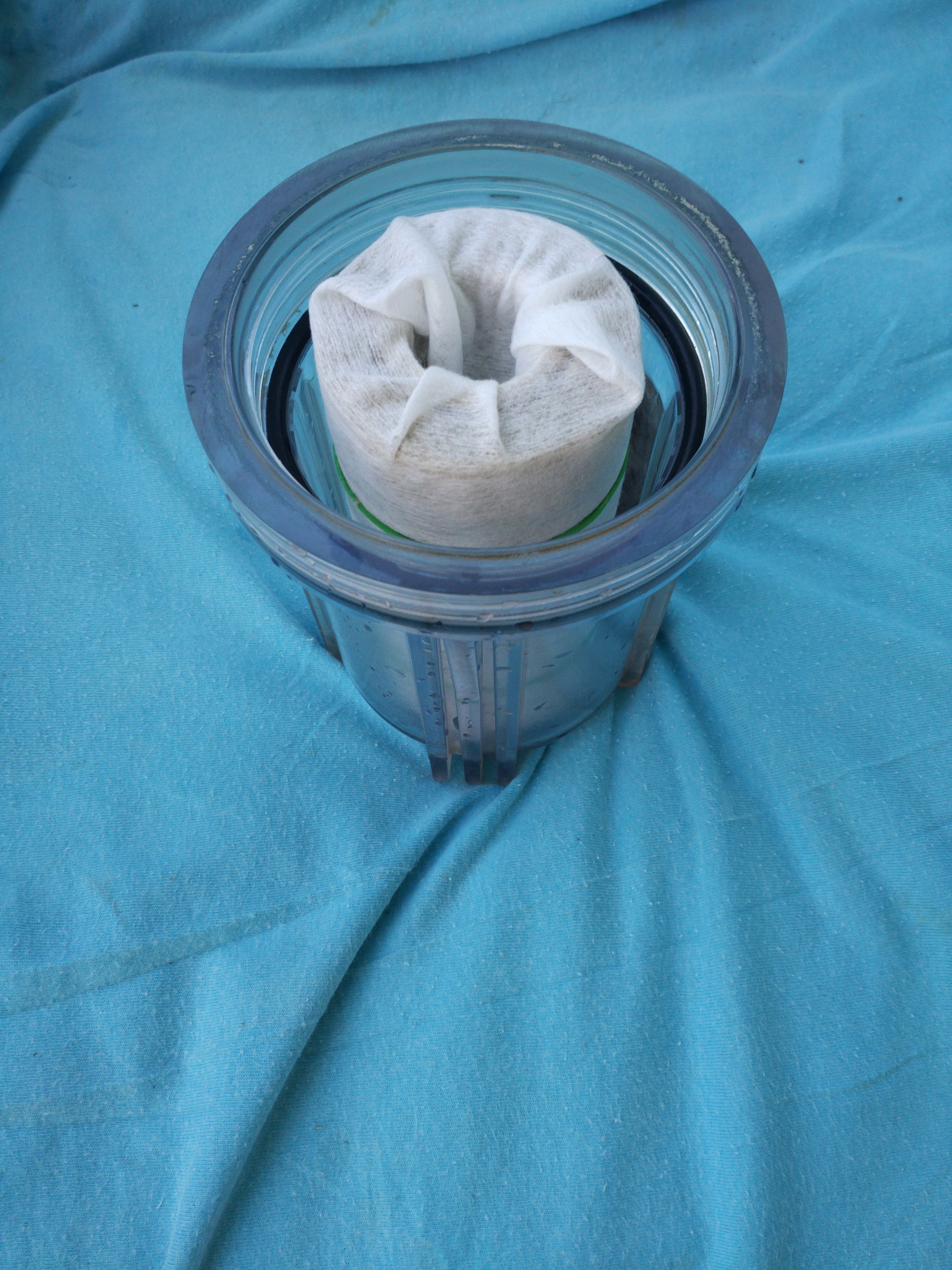 Фото 1. Салфетки (полотенца, тряпки) из нетканого синтетического материала - бывают разных размеров, самые большие продаются в отделах, где реализуются принадлежности для салонов красоты, последние я применяю для оборачивания "стандартного" картриджа фильтра, когда "пылесошу" дно бассейна (за одну чистку дна 4,5 х 2,2 м, он у меня прямоугольный, уходит 6-8 салфеток, а одного картриджа хватает на сезон). Фото 2-6. Картриджу около 2 месяцев, поэтому он не белый, но рабочий. Чтобы полотно не раскрывалось от потока воды, скрепляю его в двух местах резинками Последние 2 фото. Это то, что осталось на ткани салфетки и что не забило картридж за 2 дня. При этом вода была еще относительно чистой. В начале августа салфетку приходится менять каждый день (она тогда становится зеленой).