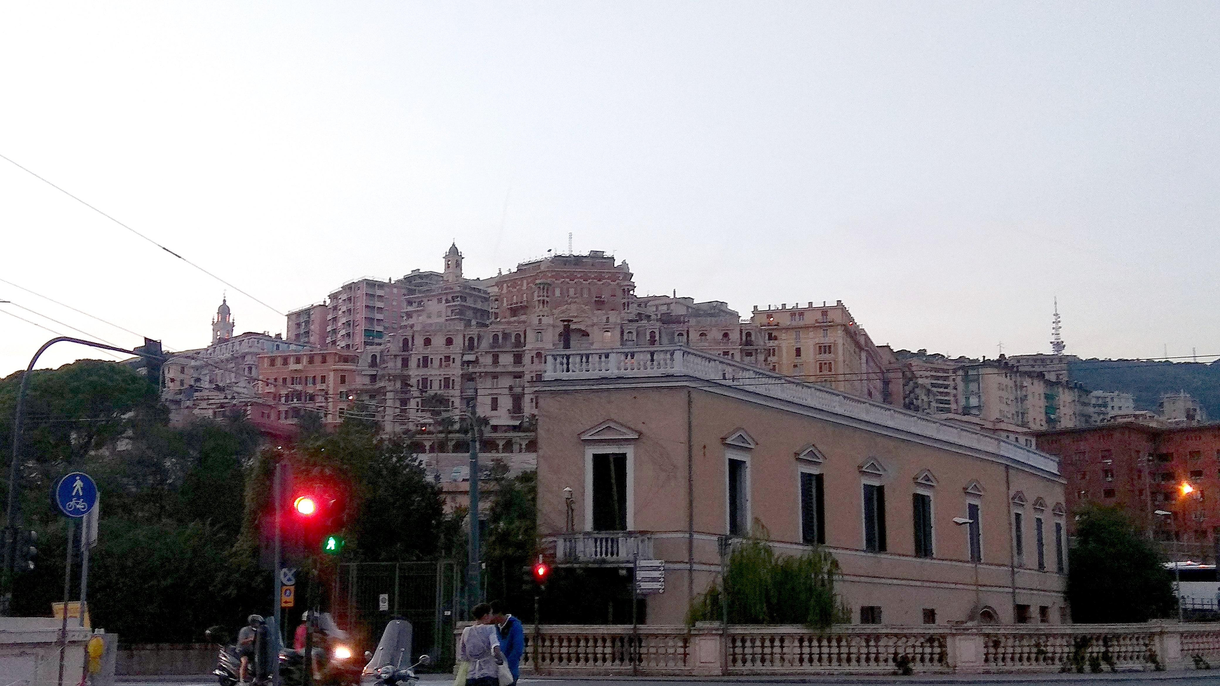 ЁПРСТ-чуть не проспали. Благо сосед из ВЛГ ответил по вайберу в 7 утра по Москве- телефон пропикал и мы вскочили . Через час с лишним поезд ! Бегом умылись позавтракали- нас уже ждал термосок с бутербродами и чаем (спасибо Сереге и Марине ) и бегом на метро. В общем вокзал огромный-пока туда-сюда-пока билеты прочекили на перроне - в общем сели в поезд за 5 минут до отправления Поехали. Скорость 160 км. На такой скорости попутно еще какой то скоростной поезд мчался с такой скоростью что я и разглядеть его нормально не успел. Приехали. Ну что сказать -красотища -впрочем как вся Италия. Гуляем- наслаждаемся городом. Жарко-около 30 . Море вот оно а искупаться негде. Говорят надо проехать несколько остановок на автобусе. купили по 1.5 евро билеты на все виды транспорта действующие 90 минут. Сели на фуникулер прокатиться в старый город