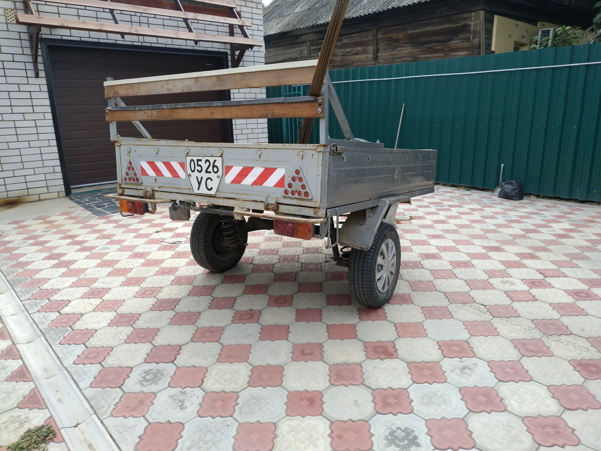 есть прицеп габаритами кузова 1,8*1,6. Поставлен на заднюю балку от 12-ки, пружины и аморты от 4-ки. Сделаны крепежи для стяжек по дну кузова вдоль бортов. Новые 13 колеса и абсолютно новая запаска, дуги под тент увеличил, тент новый шил. Ни разу его не ставил. Откидываются задний и передний борты. Новое сцепное устройство. Грузоподъемность 500. таблички все на месте, рама целая без проблем, не гнилой нигде. Год выпуска 1991, доки в порядке. Хочу 20000р