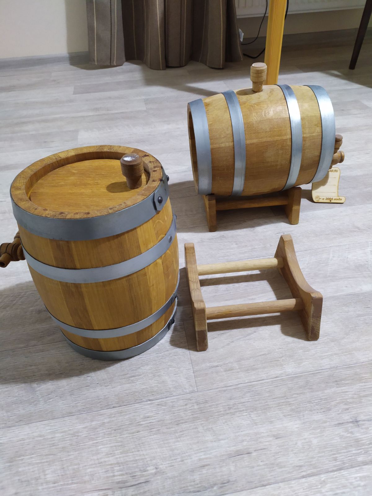 Вот фотки. По цене. Пусть будет по 5000 за бочку. Плюс бонусом трехлитровая бочка из дуба, напитки в ней в ней просто огонь через три месяца, такой "вкусной бочки" еще не встречал. Но есть косяк рассохлась надо заново собирать. Подтекает. Упустил момент когда в ней все закончилось.