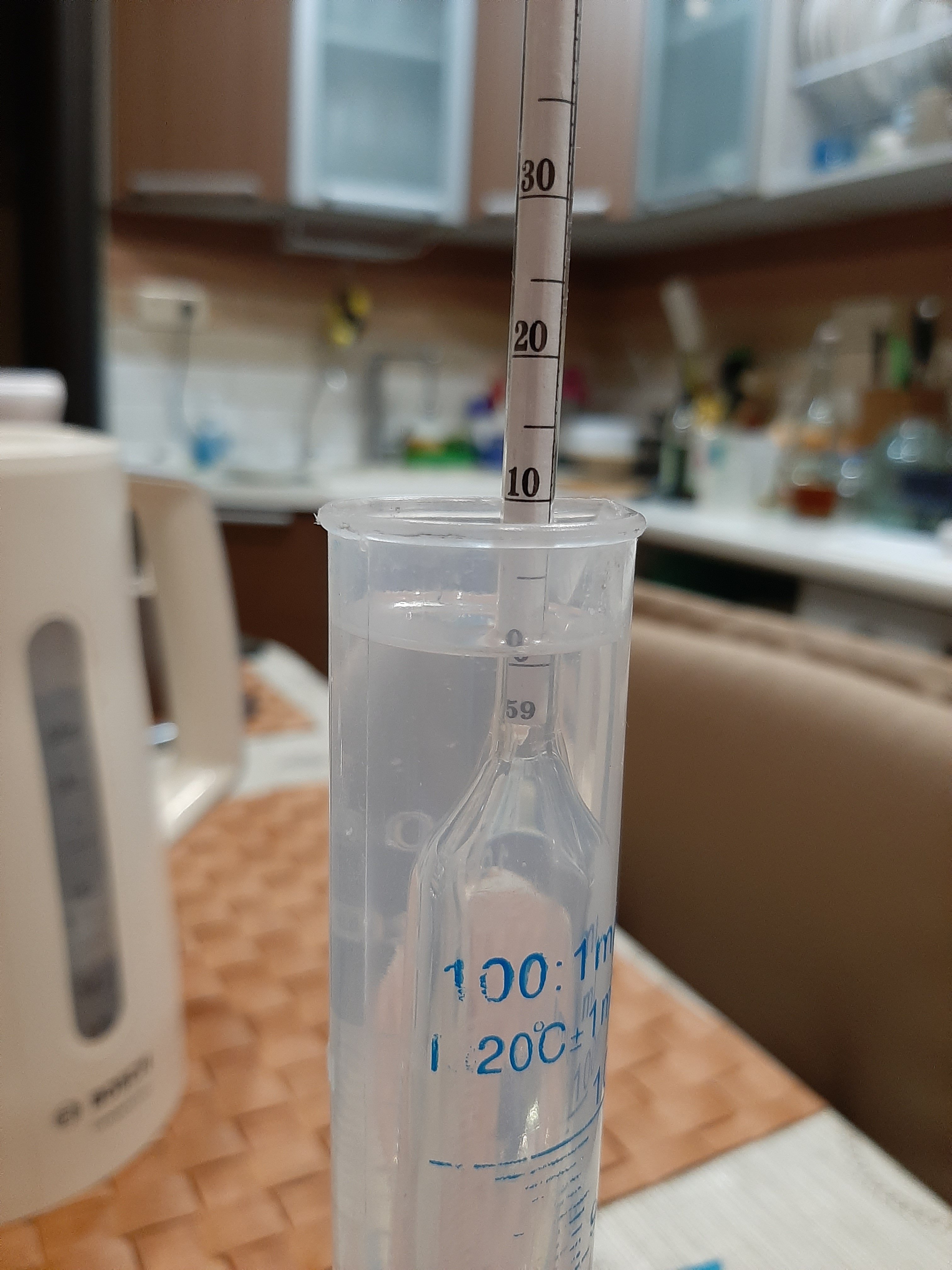 Судя по "прозрачности" гнал уже СС... Это у тебя была финишная перегонка? Какая Т была в "пробнике"? Сколько литров оставалось в кубе? Ну и насколько точно показывает твой ареометр эти малые величины по спиртуозности?