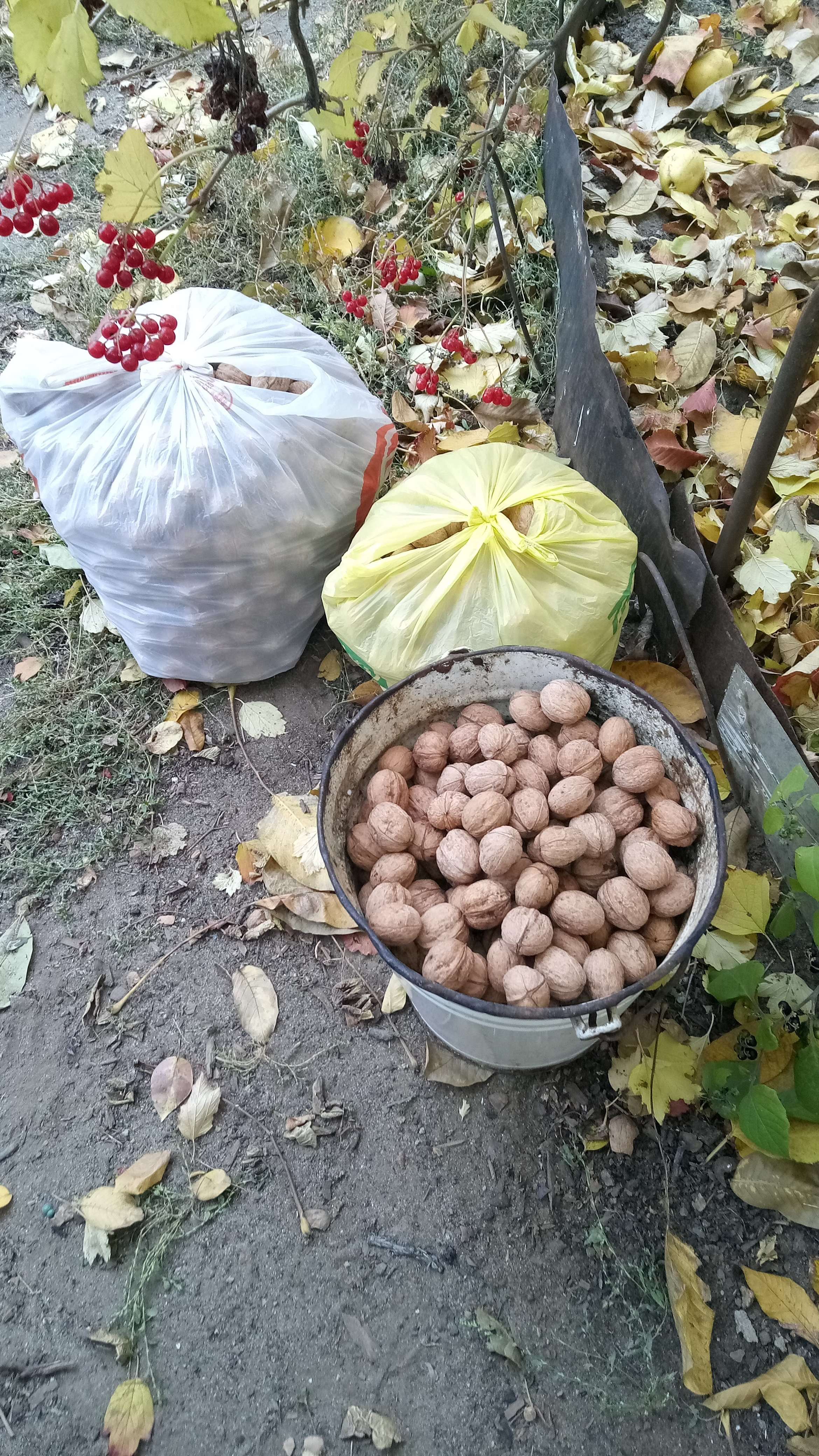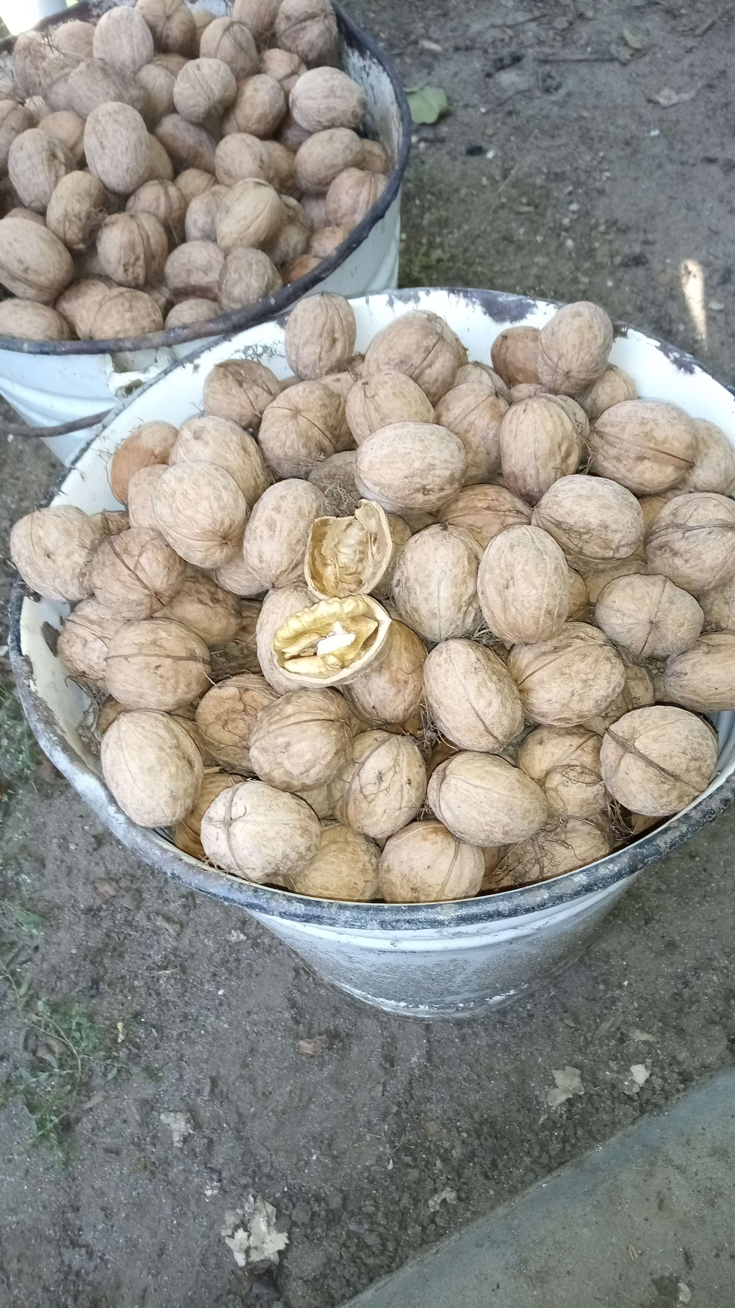 Урожай этого года грецких орехов. По объёму - ведро. Не самые крупные, т.к. лето засушливое выдалось. Скорлупа тонкая. Вес и цену уточню позже (батарейка в весах замёрзла на тот момент ), но предлагайте от рынка минус 30-40%.