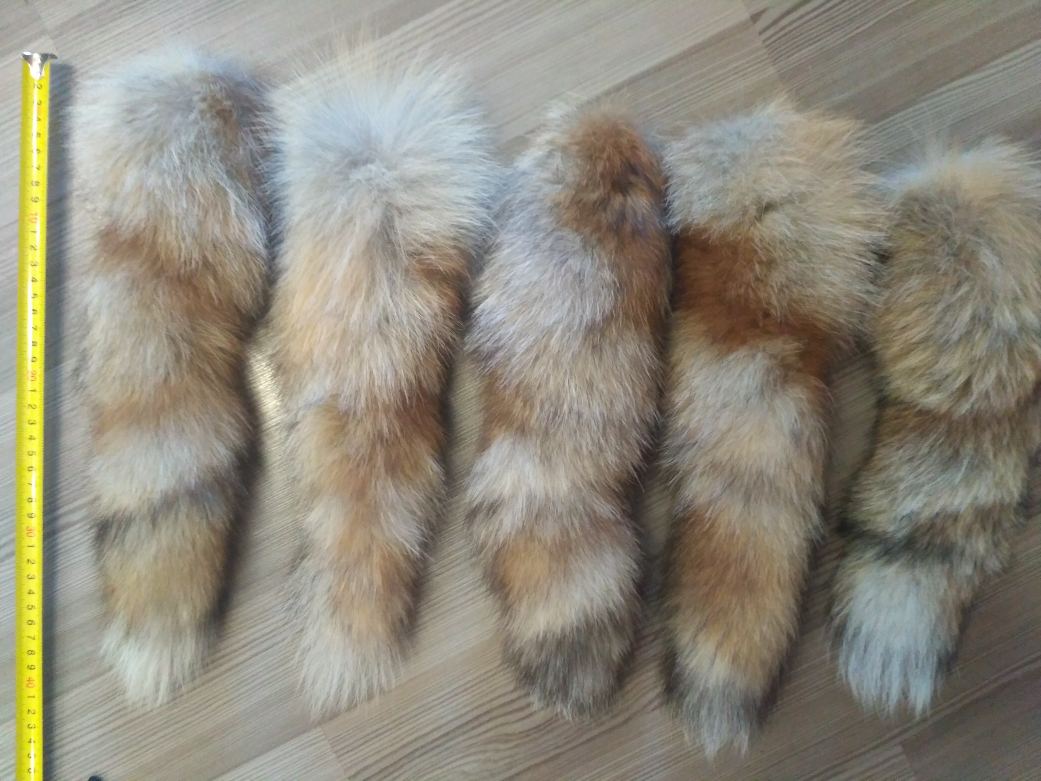 5 хвостиков рыжих лис, длина каждого около 40 см. Может, на детские костюмы маскарадные кому пригодятся. Не откажусь от темной шоколадки, мандаринов либо яблок.