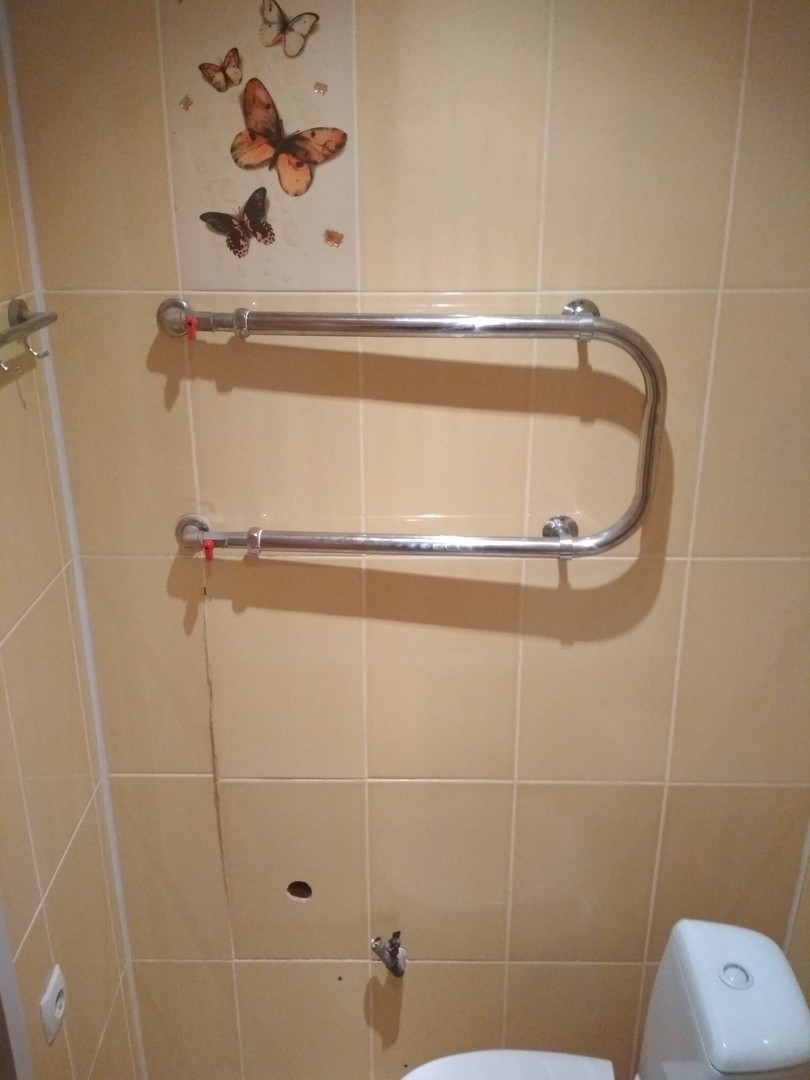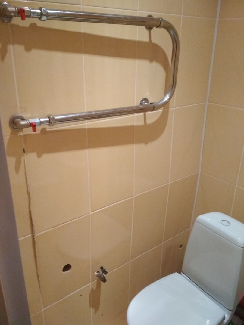 Необходимо восстановить/заменить часть плитки в ванной в съемной квартире. В стене долбили 2 отверстия перфоратором, чтобы провести временный подвод/отвод для стиралки, которая стояла за этой стеной в коридоре, из за чего отошли 2 ряда плитки на стене в ванной(8-9 штук). Масштабный ремонт не планируется(т.к съём), нужно снять отошедшую часть плитки и если при демонтаже не повредятся плитки, положить их обратно на подготовленную поверхность заново или заменить новыми. Также необходимо заменить по возможности в цвет(или на какие нибудь с декоративным рисунком) 2 плитки с отверстиями от перфоратора(фото прилагаются) и заделать 2 отверстия в стене. Советский район