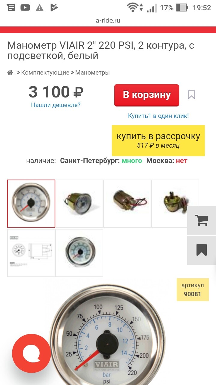 Манометр 220PSI, 2 контура, где может быть в наличии?