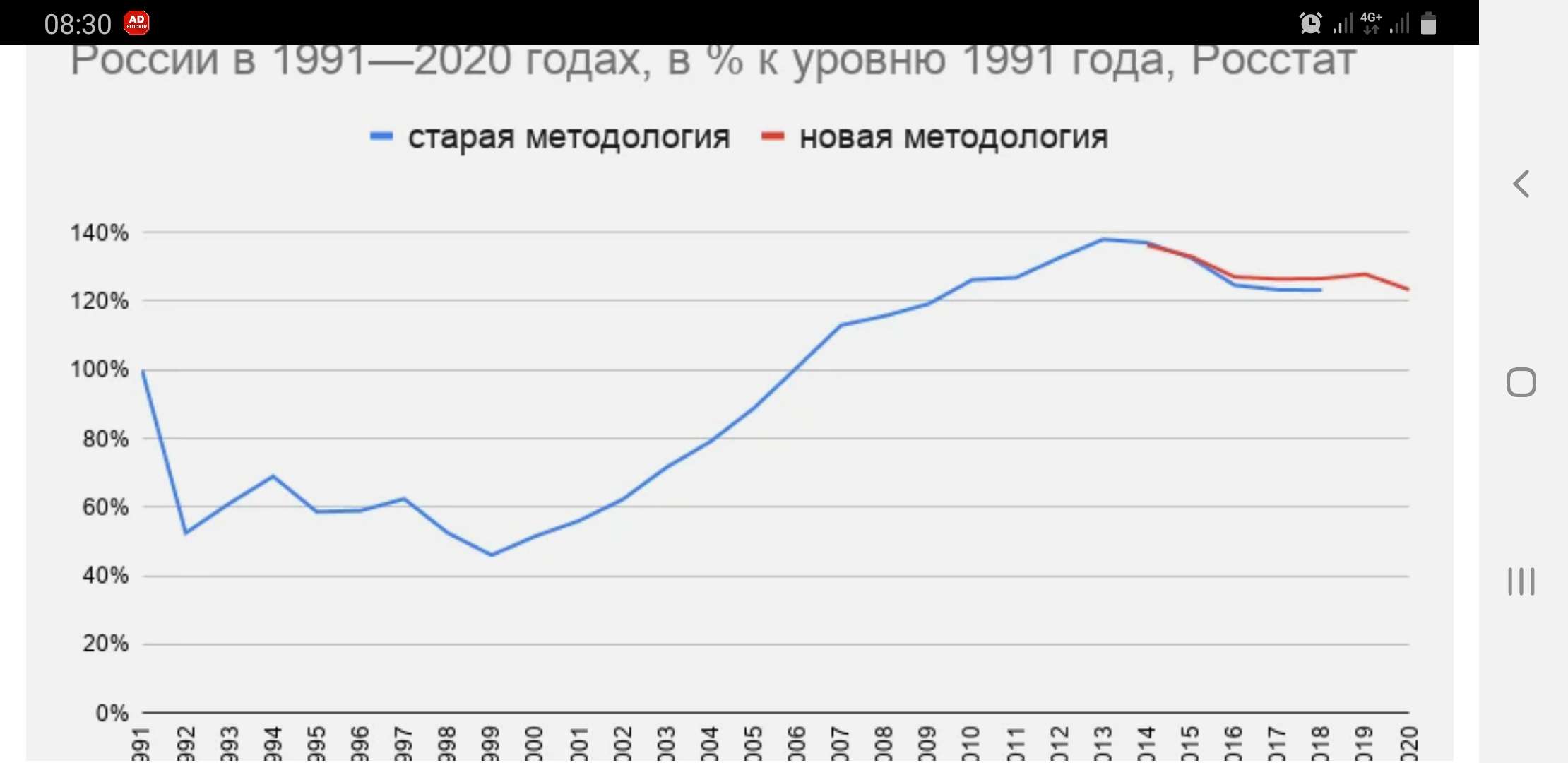 Вот картинка из вики. Для простоты даю ее, но можете сами взять статистический ежегодник "Россия в цифрах", он есть в свободном доступе. Вот согласно оф. данным доходы россиян снижаются с 2014года. Конечно можно возразить, что Волгоградская область не Россия, но что-то я сомневаюсь, что наш регион ломает эту статистику Кстати красная линия это расчёт по новой методике. Т.е. чтобы увеличить доходы, не обязательно что-то улучшать в экономике, нужно просто поменять методику расчёта. )))