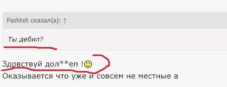 То есть вы считаете что мне надо комментировать каждый пост тут включая глупые сравнения ? При Путине бензин в России подорожал почти на 500% — с 8 до 46 рублей @Lyosha, Сударь- ваша выборка неполная. И если пройти по тому откуда вы это вы повыдергивали то любой увидит что это адекватная ответка- на их же языке. Что и видно на скрине внизу. Кстати - так и будет Какой ответ такой привет. Украдина -приебалты ? Значит в ответ Раша-параша . Де*ил- мудик и пр.- в ответ будет- сам дол***йоп очкастый . Устроит ? Или будем вести себя достойно ? Названия стран писать провильно - ники не коверкать и пр. Не хотите - ну тогда такой же будет ответ.