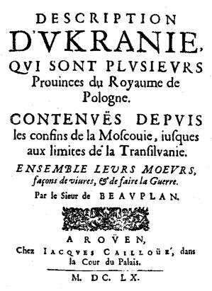 перевод: "Описание общее мест БЕЗЛЮДНЫХ, в просторечии называемых окраинами (украя), с прилегающими областями" - "Delineatio generalis Camporum Desertorum vulgo Ukraina, Cum adjacentibus Provinciis".
