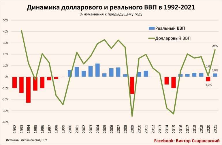 Лучше бы изучил этот вопрос подробнее, что такое номинальный ВВП в долларовом эквиваленте, как его считают ( по прошлому курсу и тому что съела инфляция), что входит в формулу подсчёта, а это не только возрастающие цены на продукцию (все в этом году подорожало), но и расходы на госаппарат и армию, а на это Украина да тратит как никогда, тем более амеры стараются, деньги рекой льются, правда не в промышленность и развитие производства, а что бы хохлы быстрее самоубились...