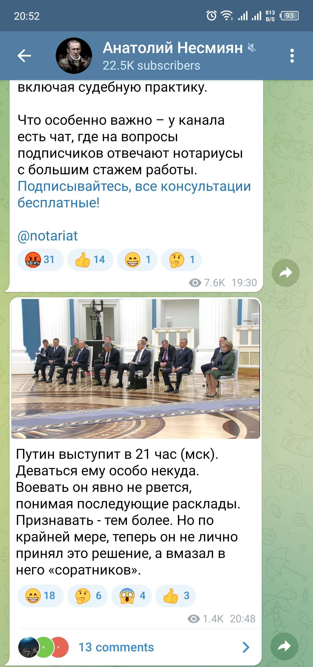 Человек наблюдающий это в прямом эфире, пишет на форум: сейчас признают ДНР и ЛНР.