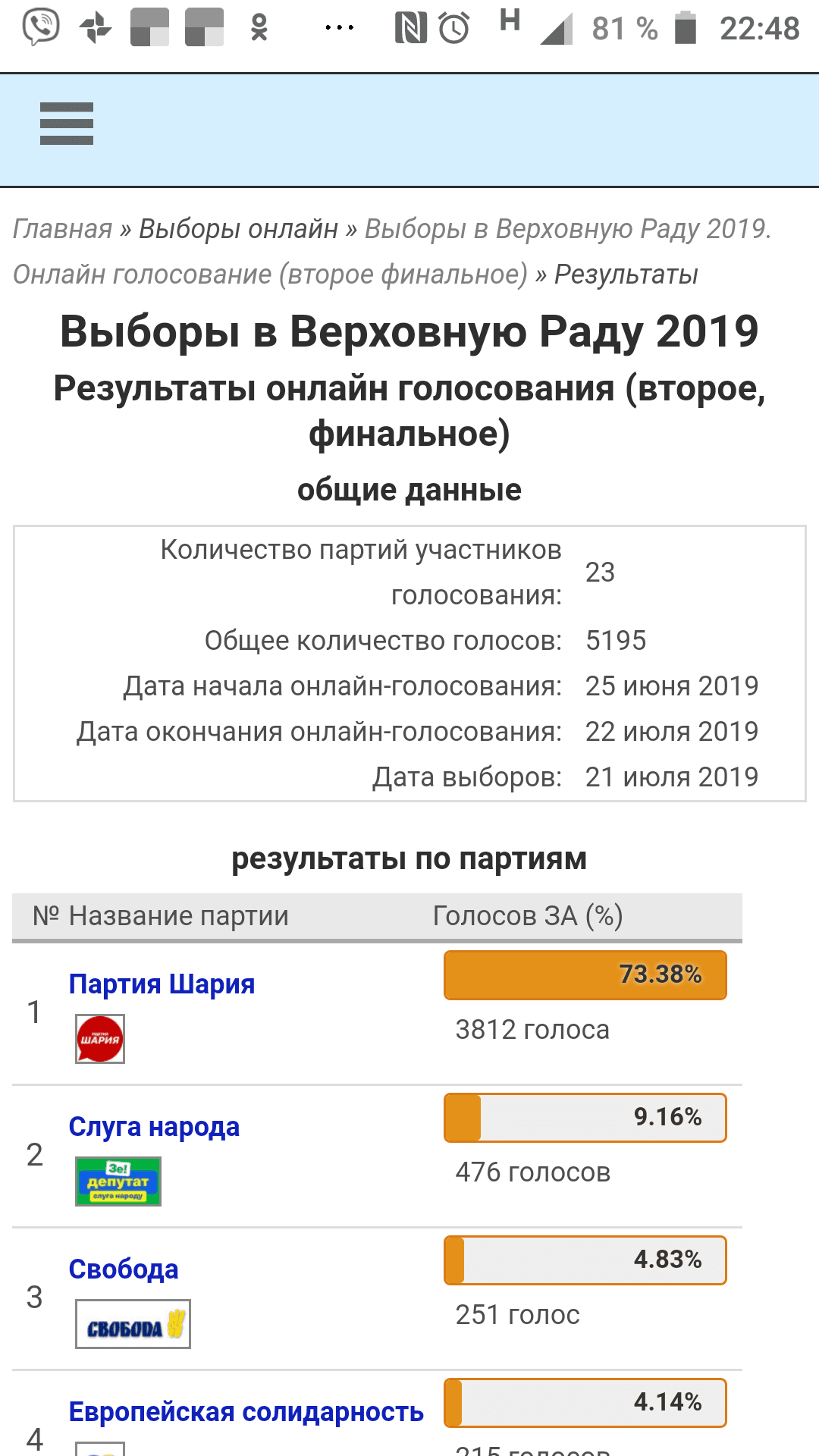 У украинского ЦИК нет же русской версии? ) Шарий набирает столько же, сколько националисты Свободы и в три раза больше чем львовская Самопомощь. Центральна виборча комісія - Вибори народних депутатів України 2019
