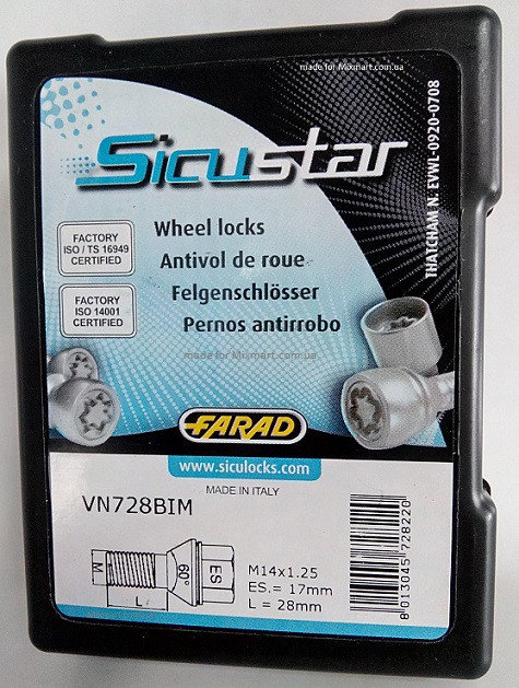 @Scv1dvarD, Купить К-кт секр. гаек М12х1,25х35 Конус, Закр., кл.19/21 FARAD SICU LM215L, цена. Стоимость и фото детали, доставка, продажа оптом и в розницу.