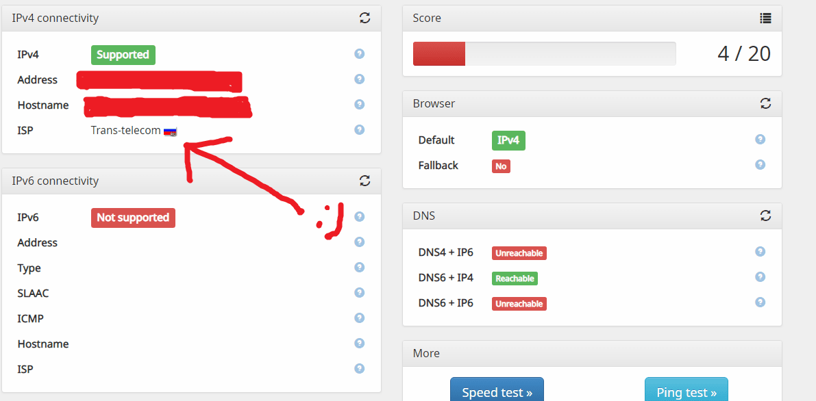 @немогупридумать, тогда тыц. imho А в поддержке-то что говорят? IPv6 test - IPv6/4 connectivity and speed test
