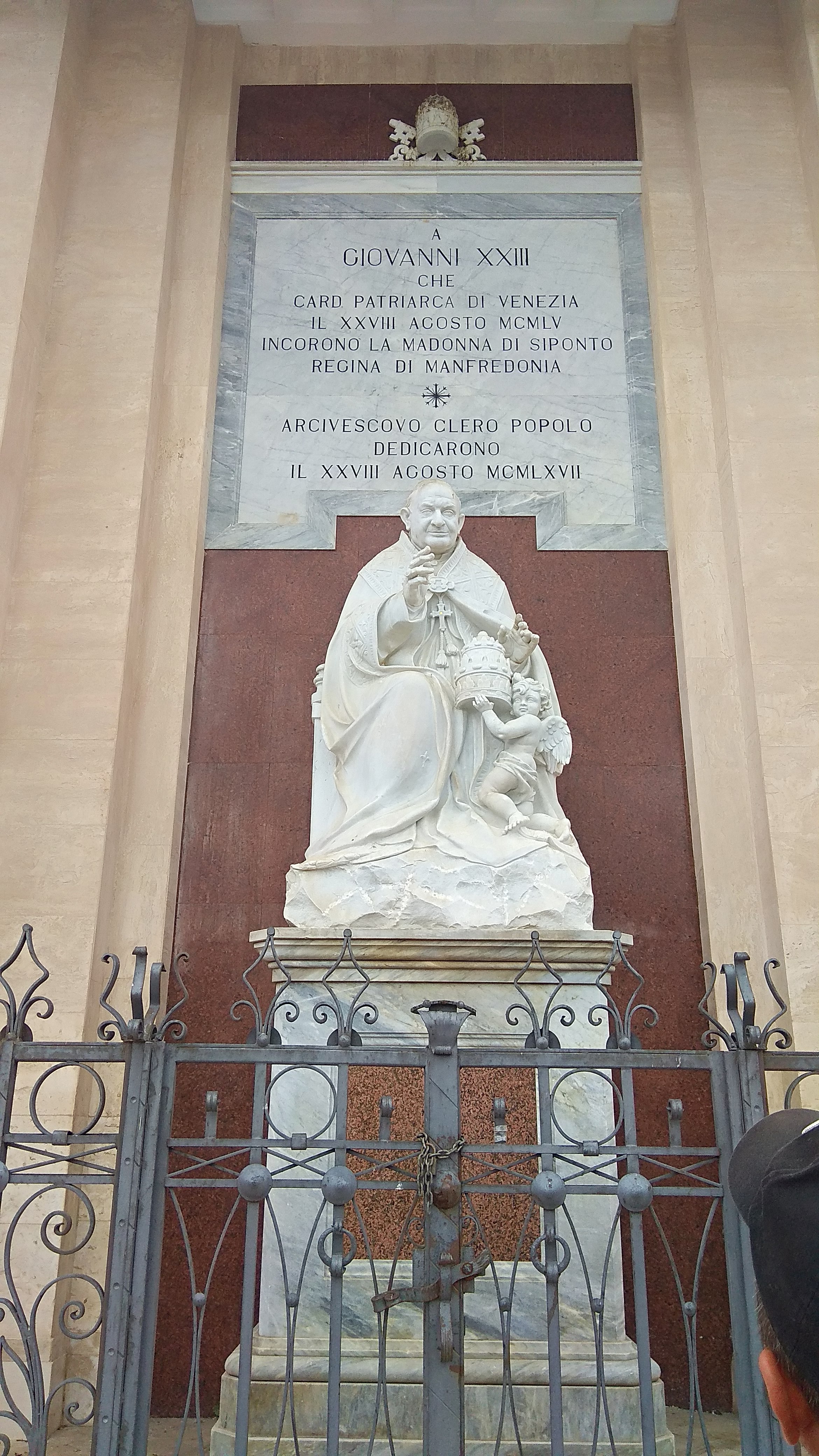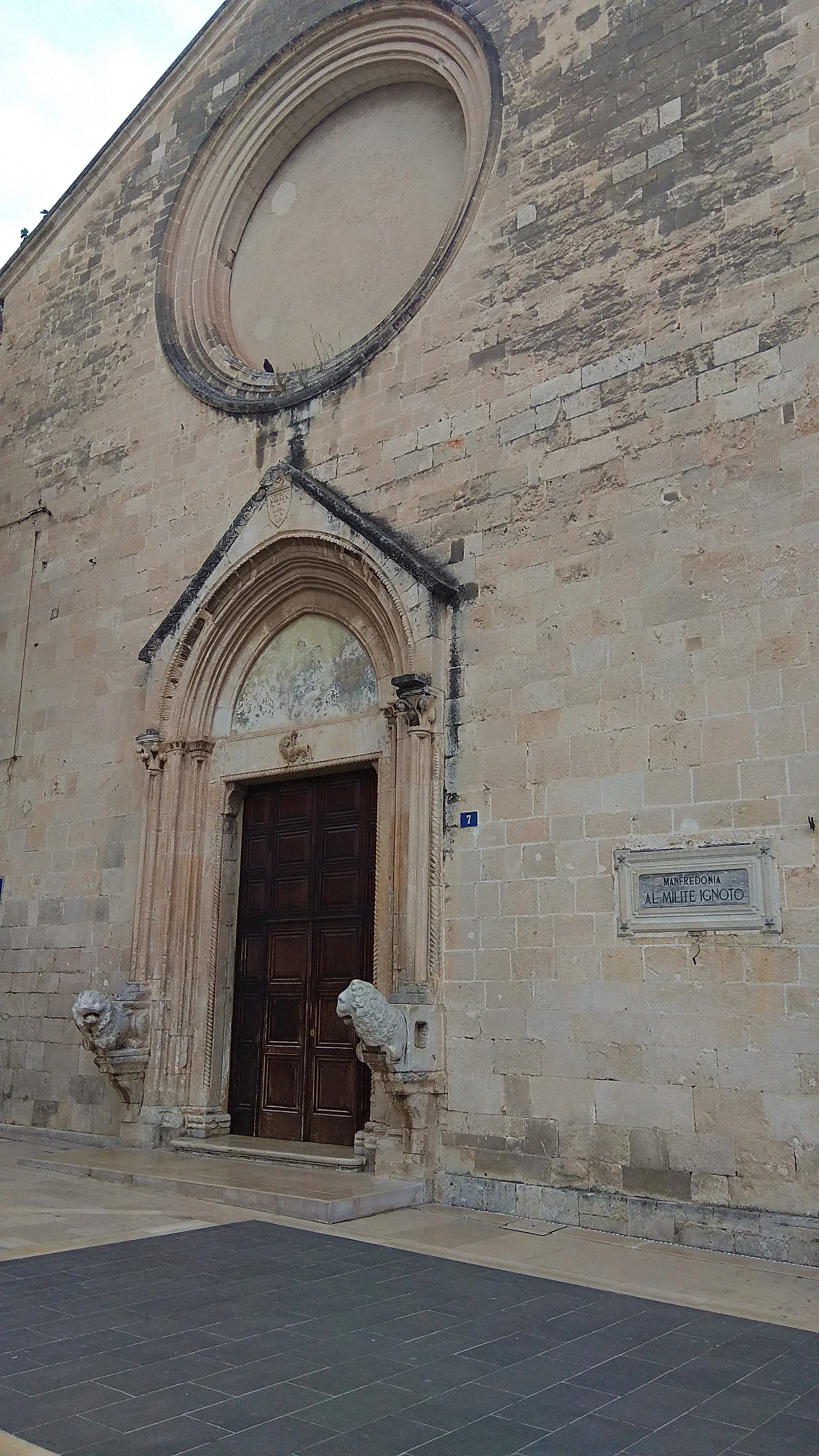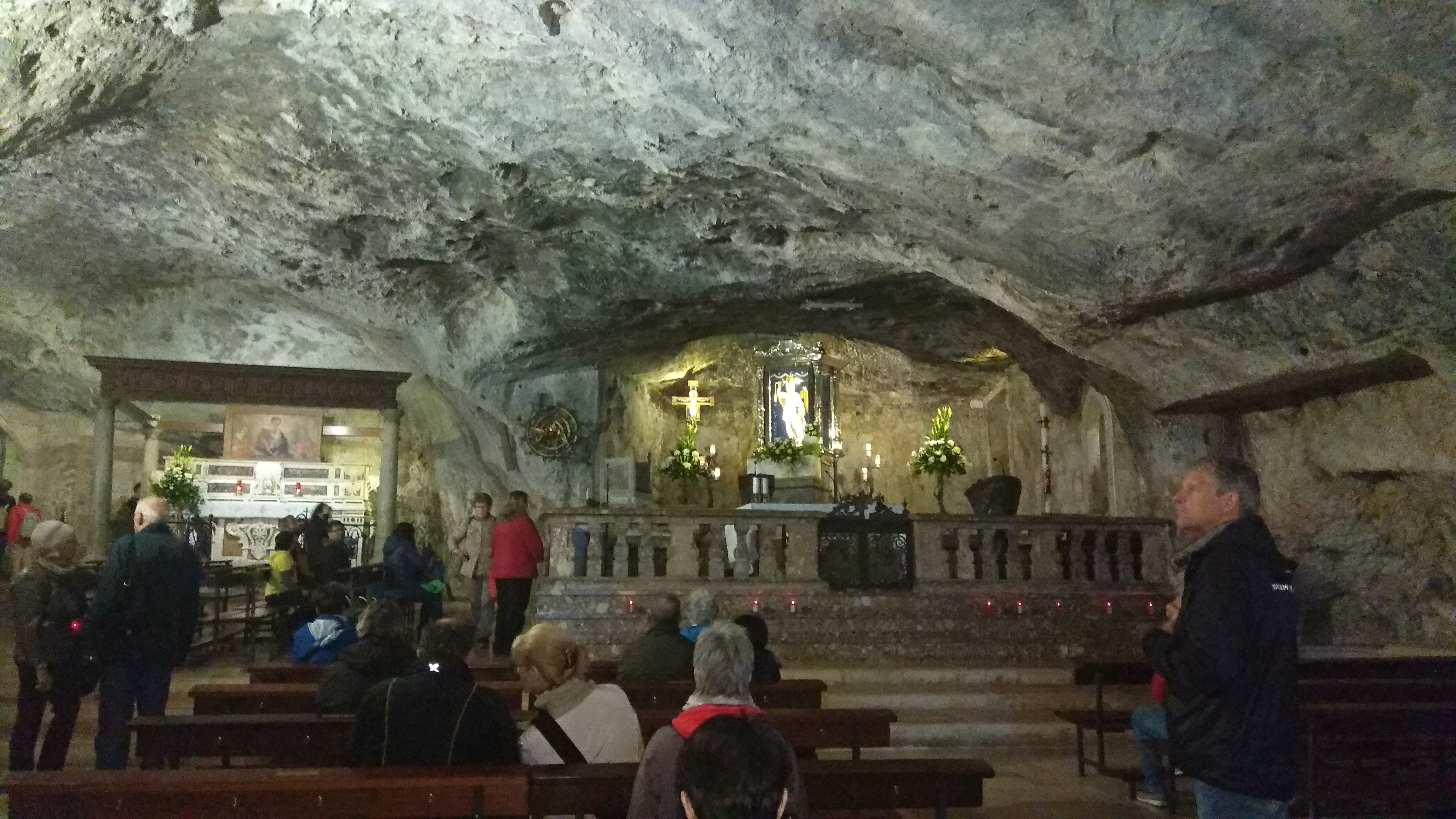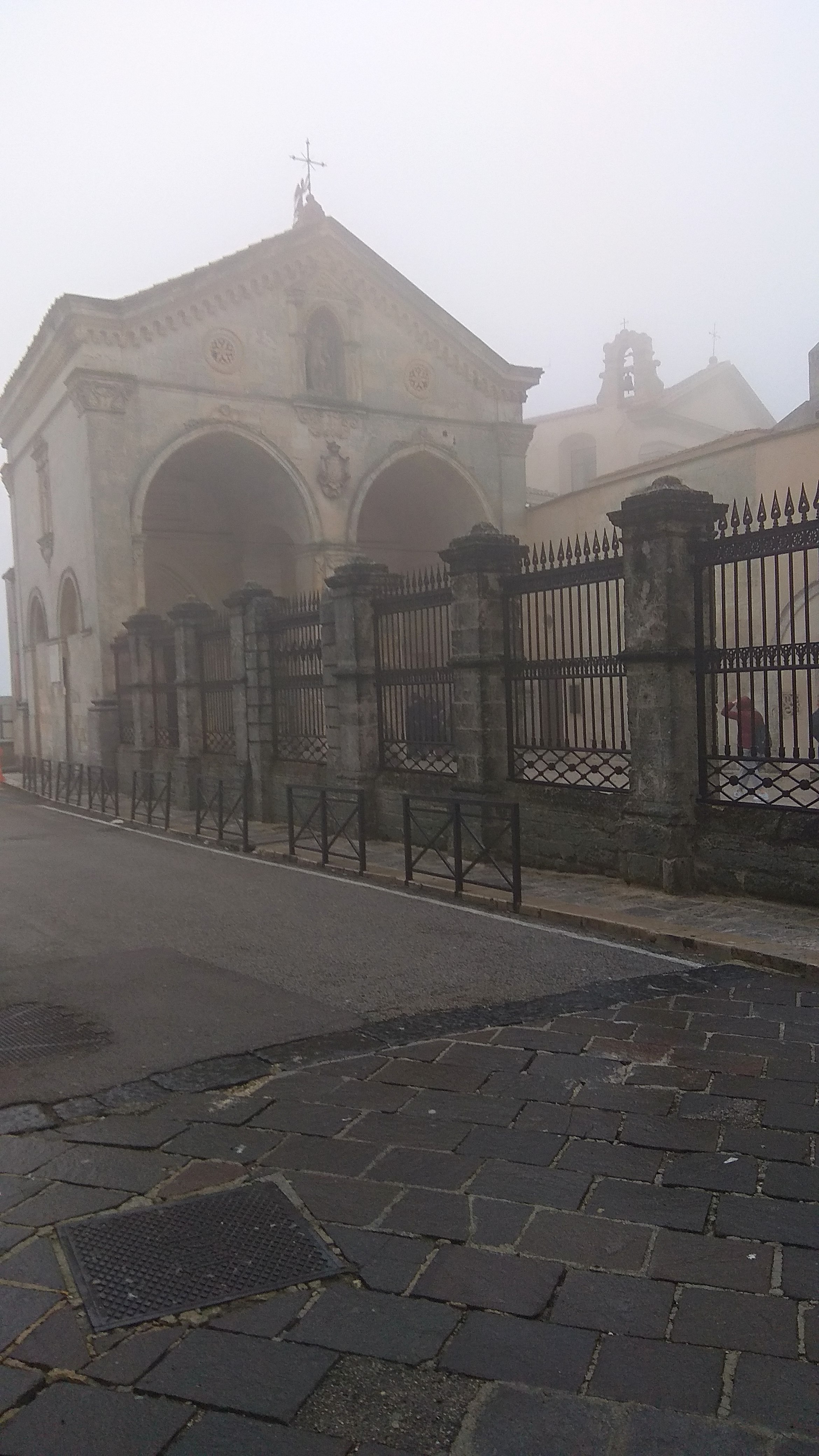 Итак неделю мы отдыхали у брата в гостях в этом городке . Конечно тупо сидеть в доме- это нас не устраивало да и родню тоже. Поэтому делали выезды в близлежащие окрестности . В один из дней нас повезли высоко в горы в паломнический городок Монте-Сант-Анджело ( ехать около 30 км ) В Монте-Сант-Анджело в резиденцию к Архангелу Михаилу. Святилище Михаила Архангела (Монте-Гаргано) — Википедия Туристов полно . Автобус польский подъехал большой с поляками. Но погода. Давно в такой туман не попадал. Как в молоке. Говорят красивейшие виды оттуда сверху открываются- не повезло- ничего не видно. Но все равно интересно. Городок старый- вот так живут жители местные- это их дома на фото- прямо с улице в дверь и ты в квартире. Ну и достопримечательность конечно посетили. Подземную церковь Говорят что 490 год ! Посмотрели-вышли на улицу-погода совсем испортилась-дождь. Все равно прогулялись- зашли в кафе-кофе согрело нас немного . Поехали дальше . Так прошел 10 день нашей поездки