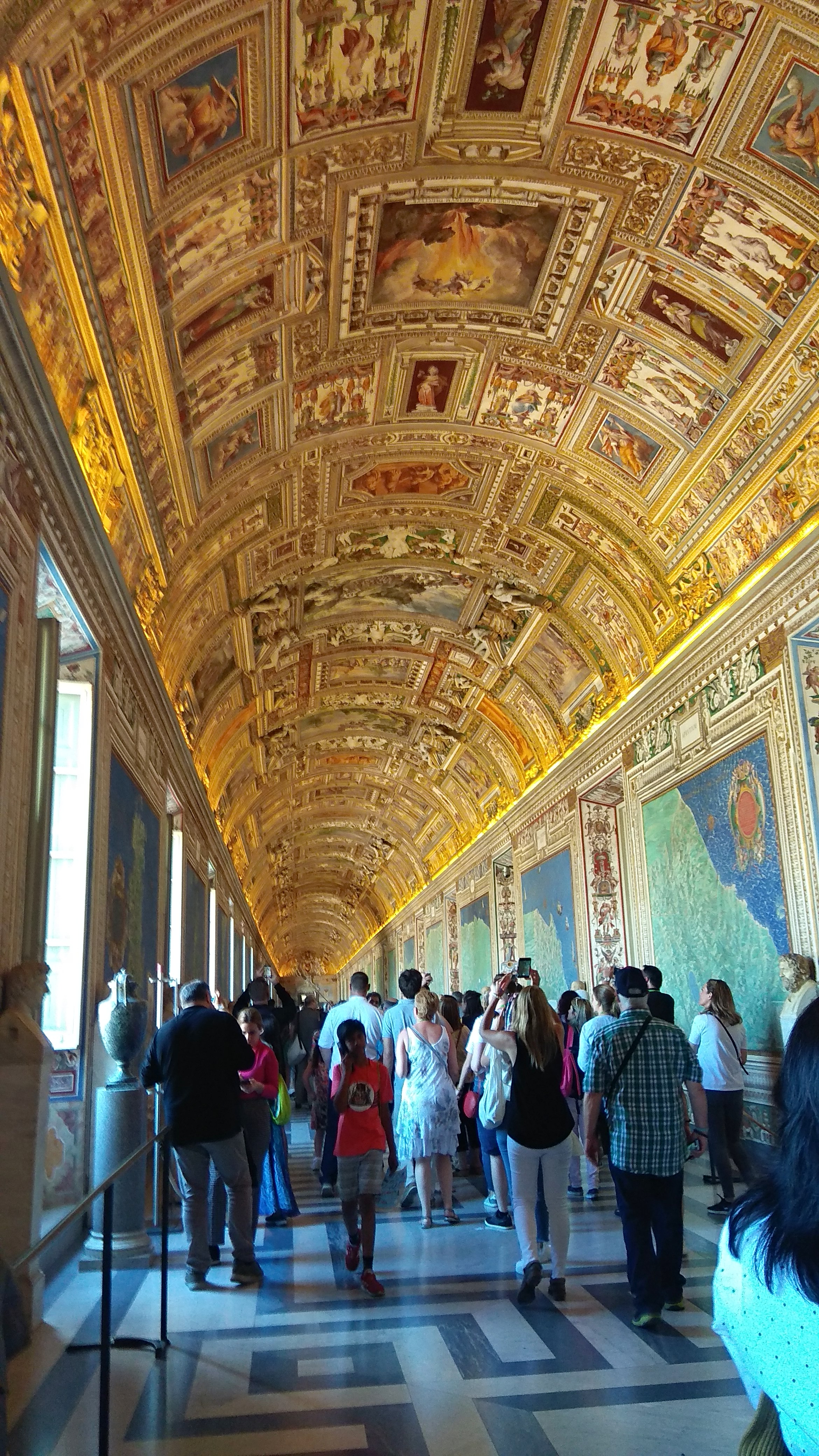 Продолжу. Поезд наш frecciargento 8302 прибыл и отправился четко по расписанию . Отправились 8.27 и в 11.23 должны быть уже в Риме ! Расстояние около 300 км. Быстро шпарит ! Суперскоростные поезда Италии: FrecciaRossa, FrecciaBianca, FrecciaRgento Едем. Попутчики сплошные итальянцы. Общаемся насколько это возможно жестами. Билеты покупал выбирал у окна-все интереснее поездка. Все хорошо летим все ближе к пожалуй главной цели нашей поездки. Древний Рим и Ватикан ! Остается езды минут 40 . И тут такая засада ! Поезд останавливается стоит минут 15 и потом задним ходом нас загоняют в какой то тоннель . Вот это да ! Стоим 30 минут -час. Мы в шоке. У нас билеты в музеи Ватикана включая обед в ресторане на 14.00. Пытаюсь понять что происходит и выясняю что неполадки на линии -сколько простоим неизвестно. Эх печаль ! А ведь еще надо куда то по приезду куда то деть багаж уже тяжелый. И главное еще надо найти отель . ( судя по отзывам он в жилом доме и найти его еще суметь надо ! ) В общем простояли мы 1.5 часа и прибыли с опозданием . Но нам повезло- мы все успели. Решение было принято мчаться сразу в отель и оставить там весь багаж . Круто повезло что выспрашивая у прохожих как пройти в отель- мужик оказался жителем этого дома и довел нас прямо до двери ! Вот это удача ! . Отель еще и оказался рядом со станцией метро в 2 остановках от Ватикана . Бросили все в отеле и помчались в Музеи. Очередь приличная но у кого билеты куплены он-лайн проходят быстро. Прошли все процедуры безопасности. В окошке получили входные билеты предъявив наши бумажки и помчались ! Куда ? Конечно в ресторан ! Не пропадать же обеду оплаченному. Тем более что уже и проголодались и вода нужна -пришла жара а ходить планируем долго. В общем набрали что хотели. Обед сытный и на выбор . Взяли воды с собой и окунулись в это великолепие. ! !!! А ведь это ковры-ткань ! Я так понимаю