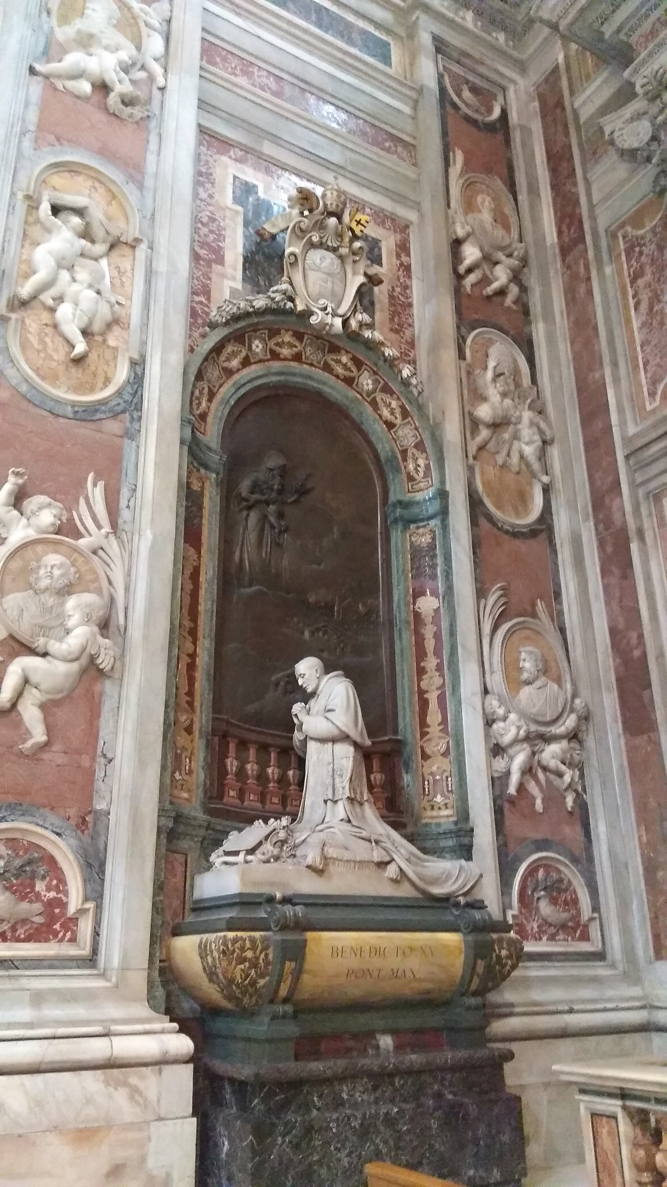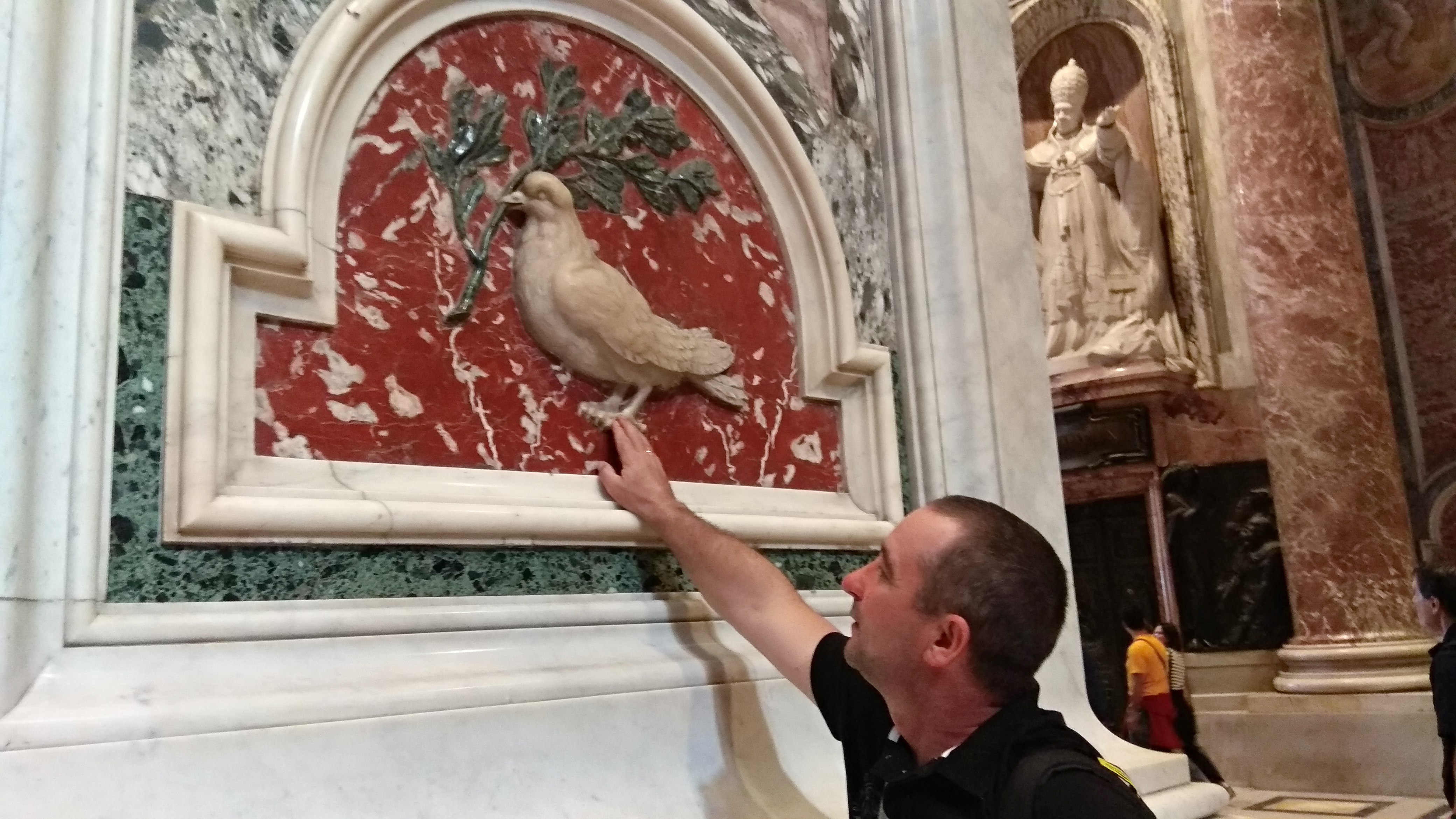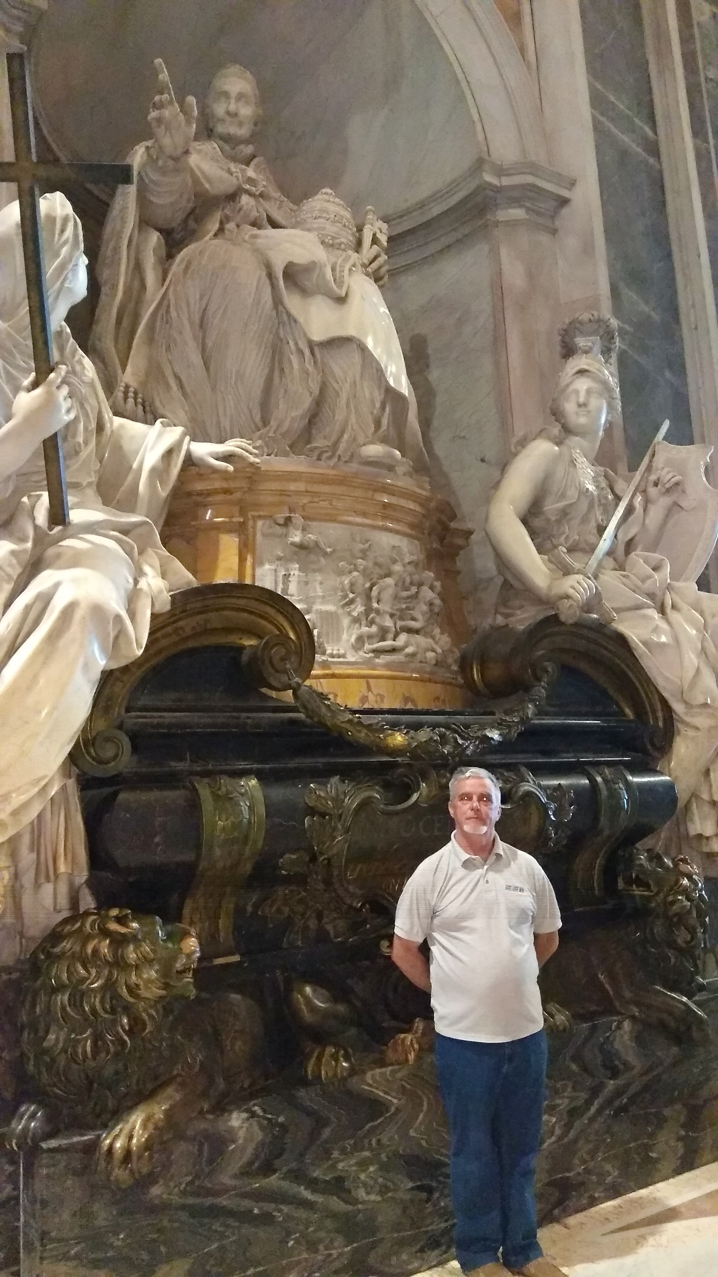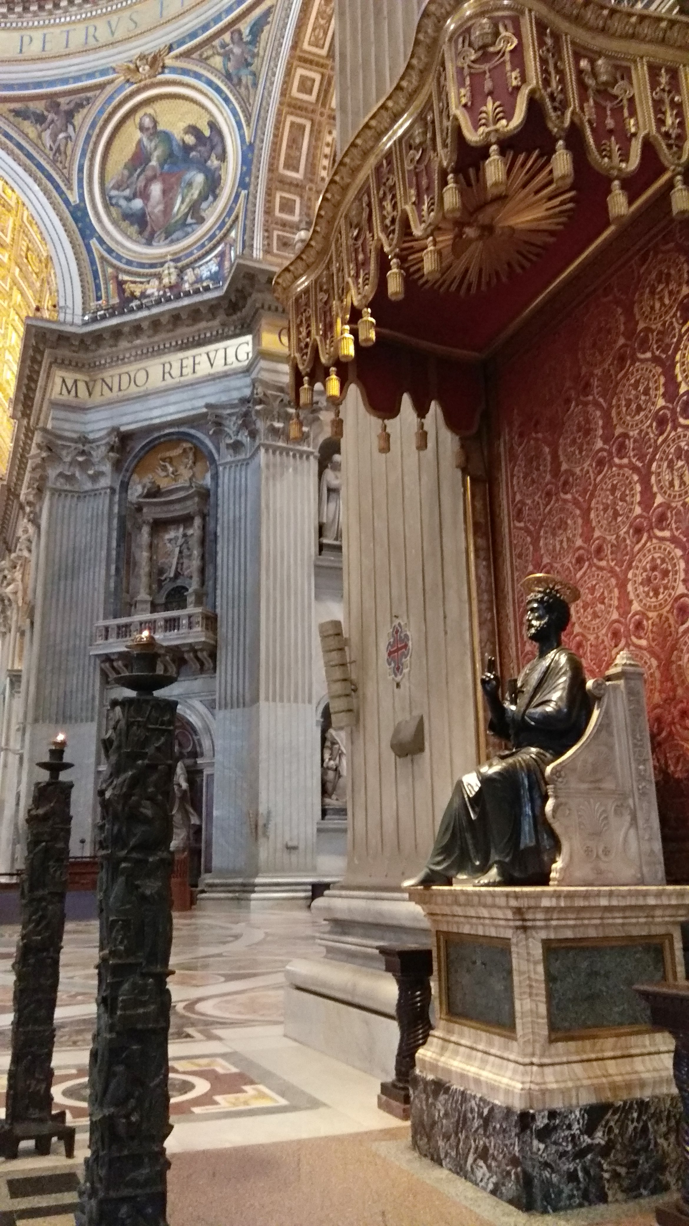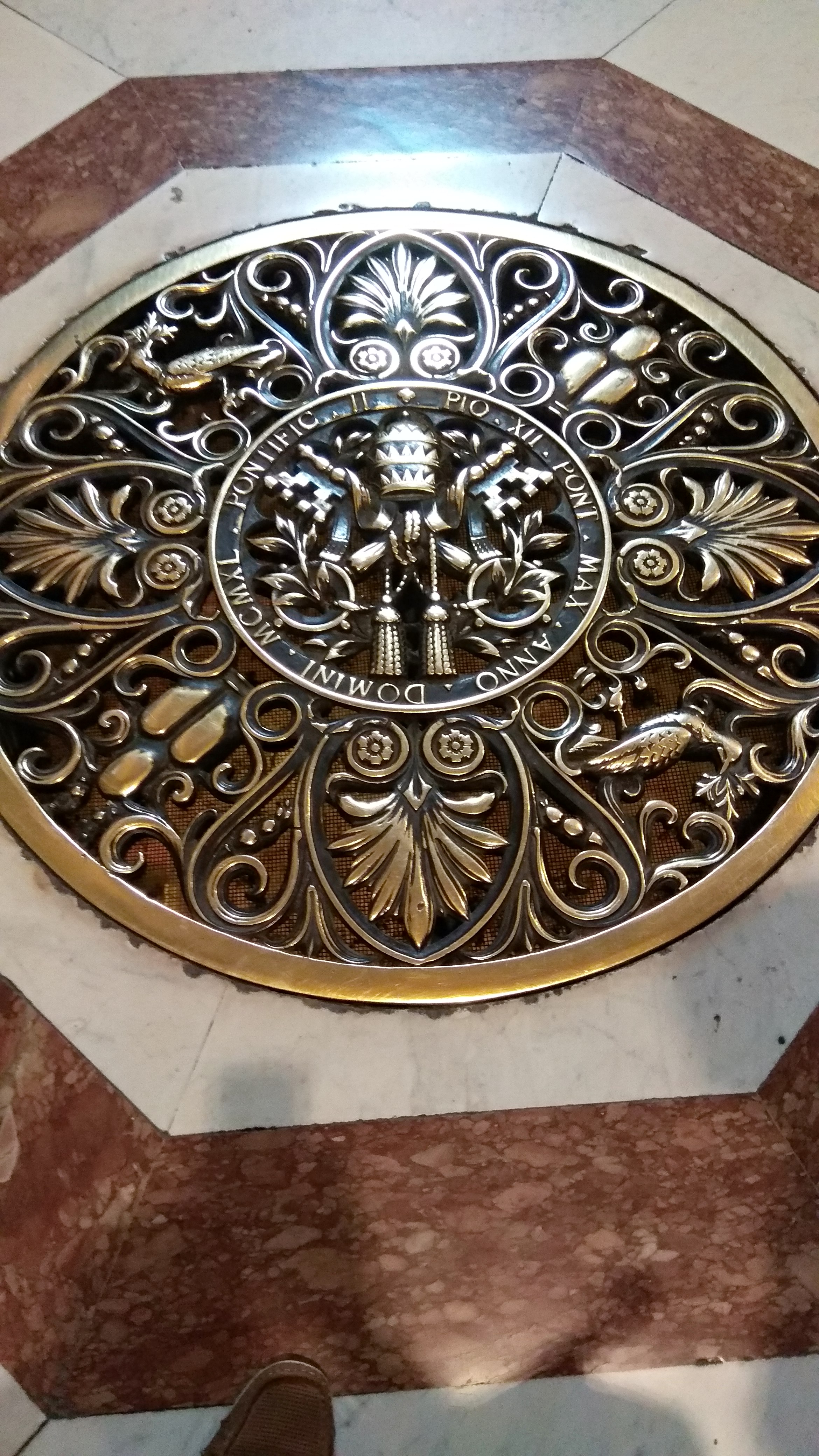 Ну надо же ! Предрасполагали-договаривались созвониться- что встретимся с братом и его женой в соборе ! А встретились случайно. Они зашли с улицы-вход бесплатный. Мы же через музей и Сикстинскую капеллу . И это хорошо.Иначе сами и не нашли бы незаметный вход под землю где захоронены предыдущие Папы Римские -прошлых времен. Зашли. Услышав нашу украинскую мову -к нам подошел охранник. Земляк ! Хахол- живет и работает в Риме. Рассказал немного подробностей а мы поснимали. Наслаждаемся шедеврами собора. С восторгом узнаю что это всё МОЗАИКА ! Кругом мрамор и композиции которым много веков.Потрясающе !