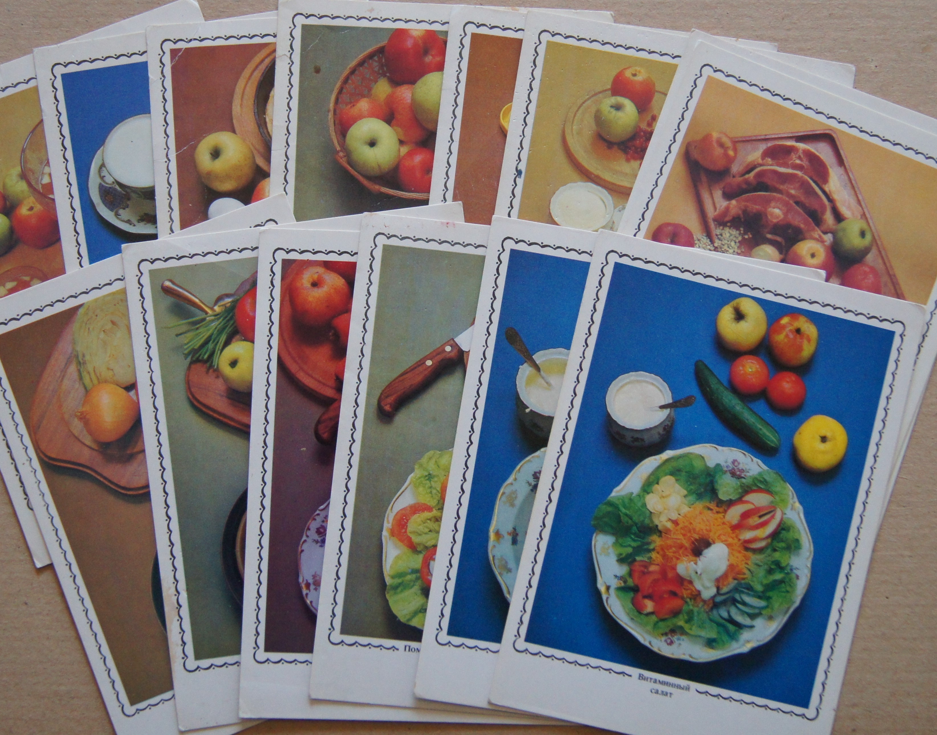 Наборы открыток времен СССР: 1. с рецептами. Кроме тех, что на фото, есть еще три набора без обложек, один из них-украинская кухня, два других, предположительно,-белорусская и прибалтийская кухни. 2. Набор с моделями одежды и выкройками на обороте, 1979г. 3. Пестрый мир аквариума, 1987г. Желательно в одни руки!!!