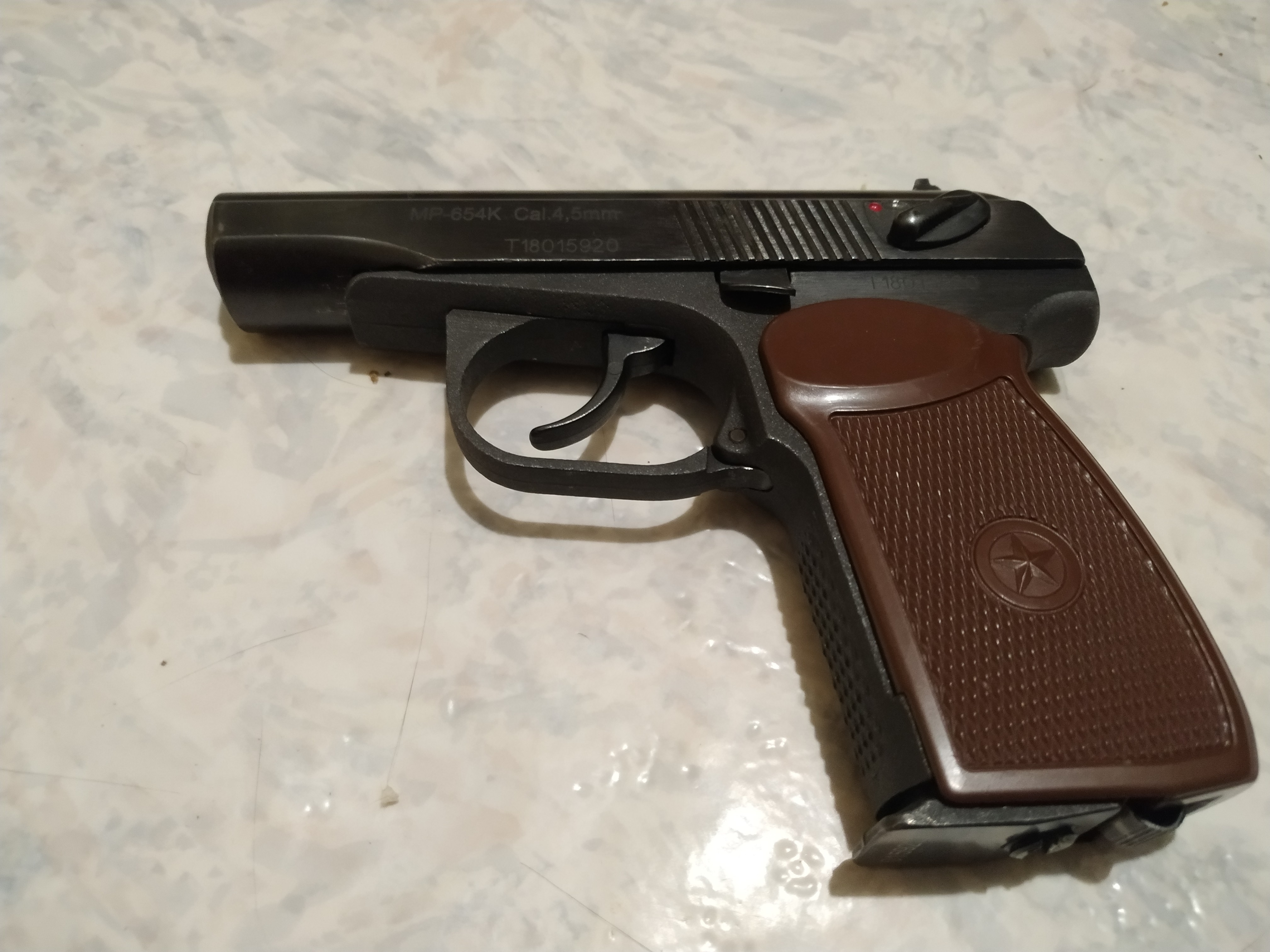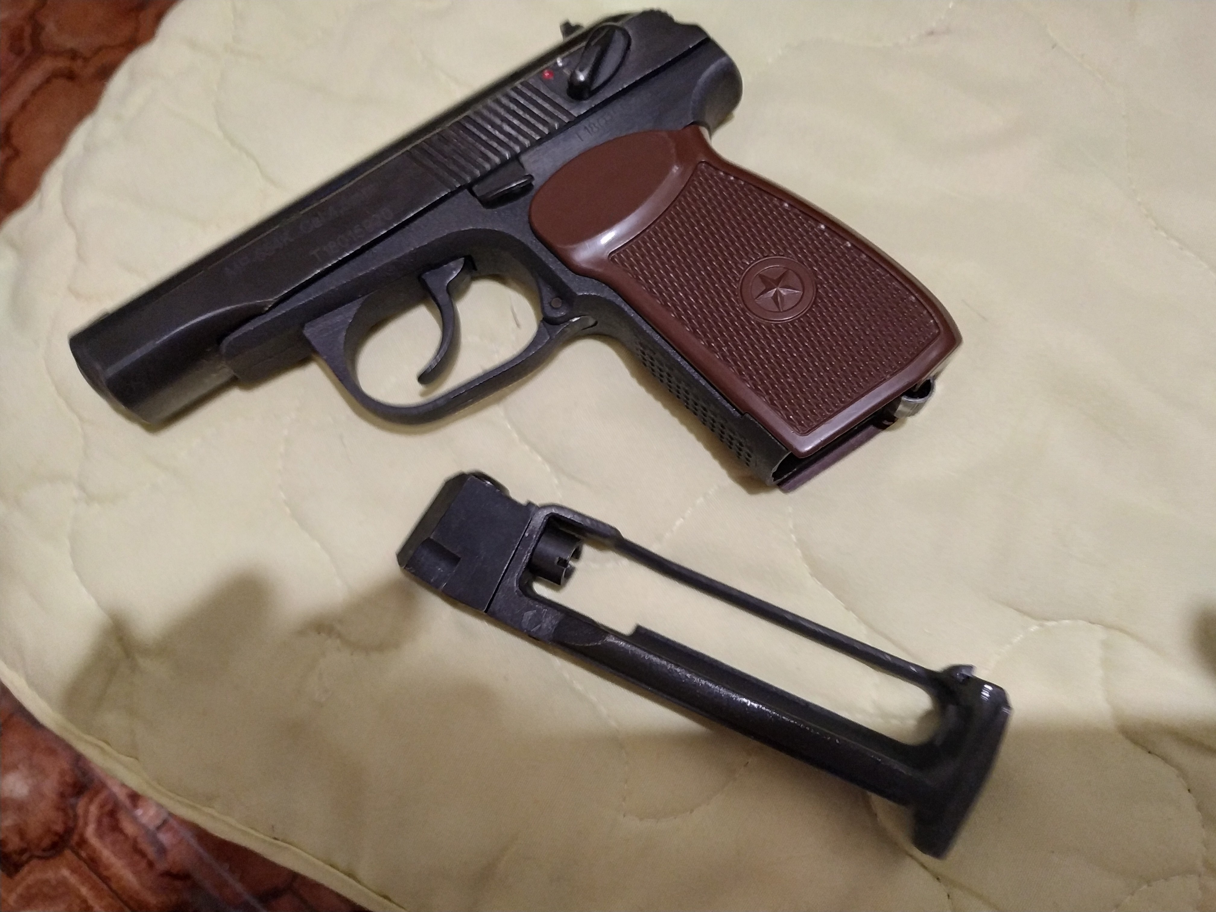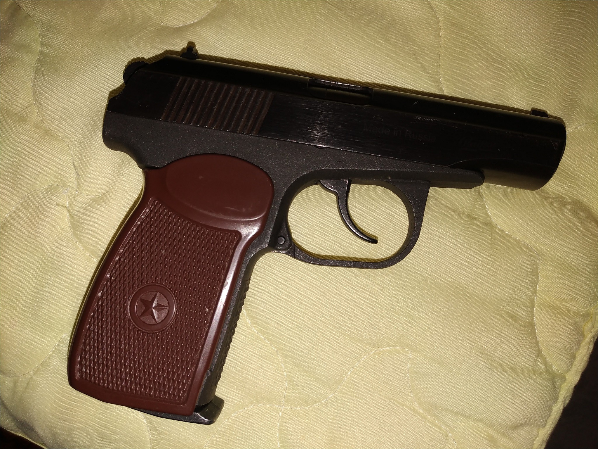 Раньше на рукояти пневматики, звезды как на настоящем ПМ небыло.