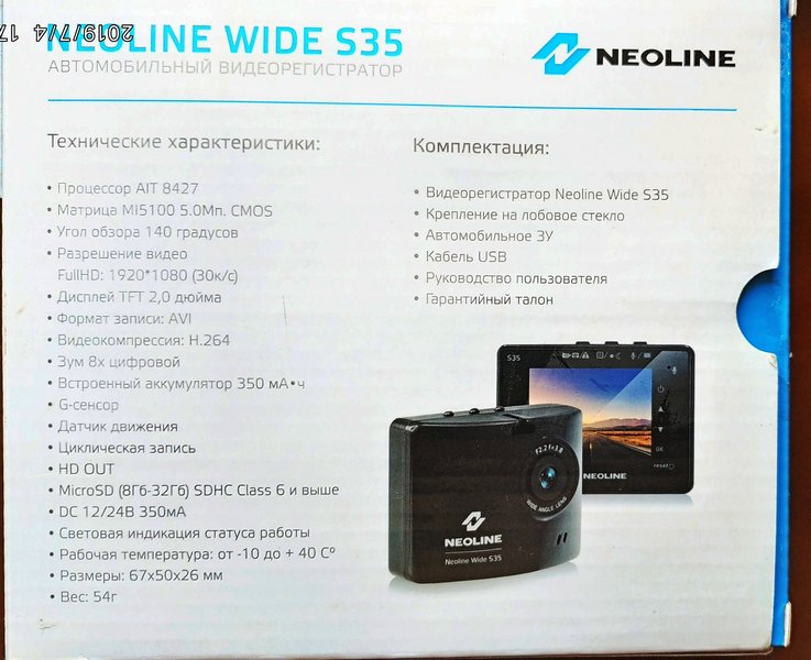 Продам Видеорегистратор NEOLINE Wide S35Видеорегистратор NEOLINE Wide S35. Покупался в Эльдорадо 31.03.2017 года. Полный коробочный комплект с чеком магазина. Нареканий в работе не было и нет. Регистратор всегда ночевал в гараже в салоне автомобиля. Качество записи отменное. В некоторых отзывах имеются упоминания о фактах зависания регика. По-началу и у меня такое случалось. Вылечилось установкой хорошей карты памяти. Сейчас стоит на 32 гига. Больше таких проблем не было выявлено. Продаю в связи с покупкой нового девайса с более широким функционалом. https://www.dns-shop.ru/product/5c1977355a853361/videoregistrator-neoline-wide-s35/opinion/ Отзывы Neoline Wide S35 | Видеорегистраторы Neoline | Подробные характеристики, Видео обзоры, Отзывы покупателей Цена? Цена, я думаю, пусть будет 2000р. без флехи, с ней - 2500р. Торг рассматриваю. Даю гарантию в качестве сего девайса.