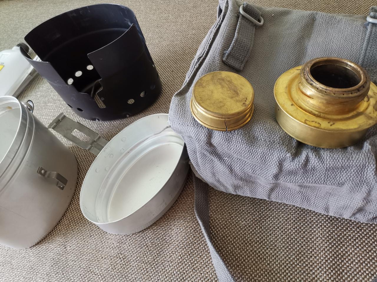 ШАК-39. Новый. Шведский армейский котелок в комплекте с ветрозащитным экраном, спиртовой горелкой емкостью для спирта. Котелок выполнен из алюминиевого сплава. Судя по тому что он не гнется с примесью железа. Дужки и крепления - стальные. Экран - сплав. Спиртовая горелка латунная. Емкость для топлива - пластик. крышка горелки с трещинкой, на функционал не влияет, но.. + к нему Набор столовых приборов Бундесвера. Оригинал. Новье, клейма BUND хочу 4 т.р.