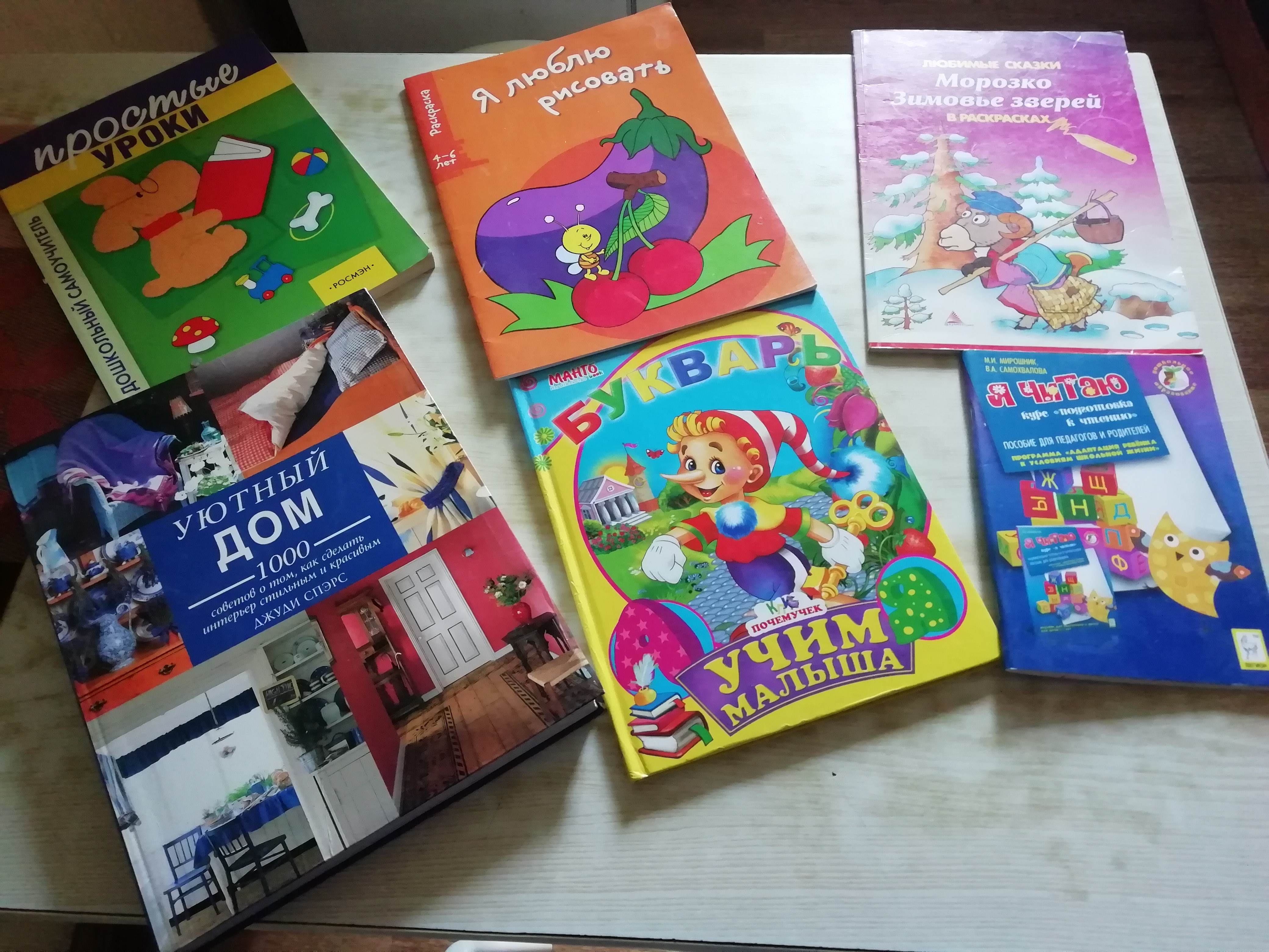 После ревизии на книжной полке остался целый пакет литературы. В основном детские книжки, раскраски. Выкинуть жалко. Забирать в дзержинском, в районе ост. Хорошева. Девятьдвасемь пять четыренуля59