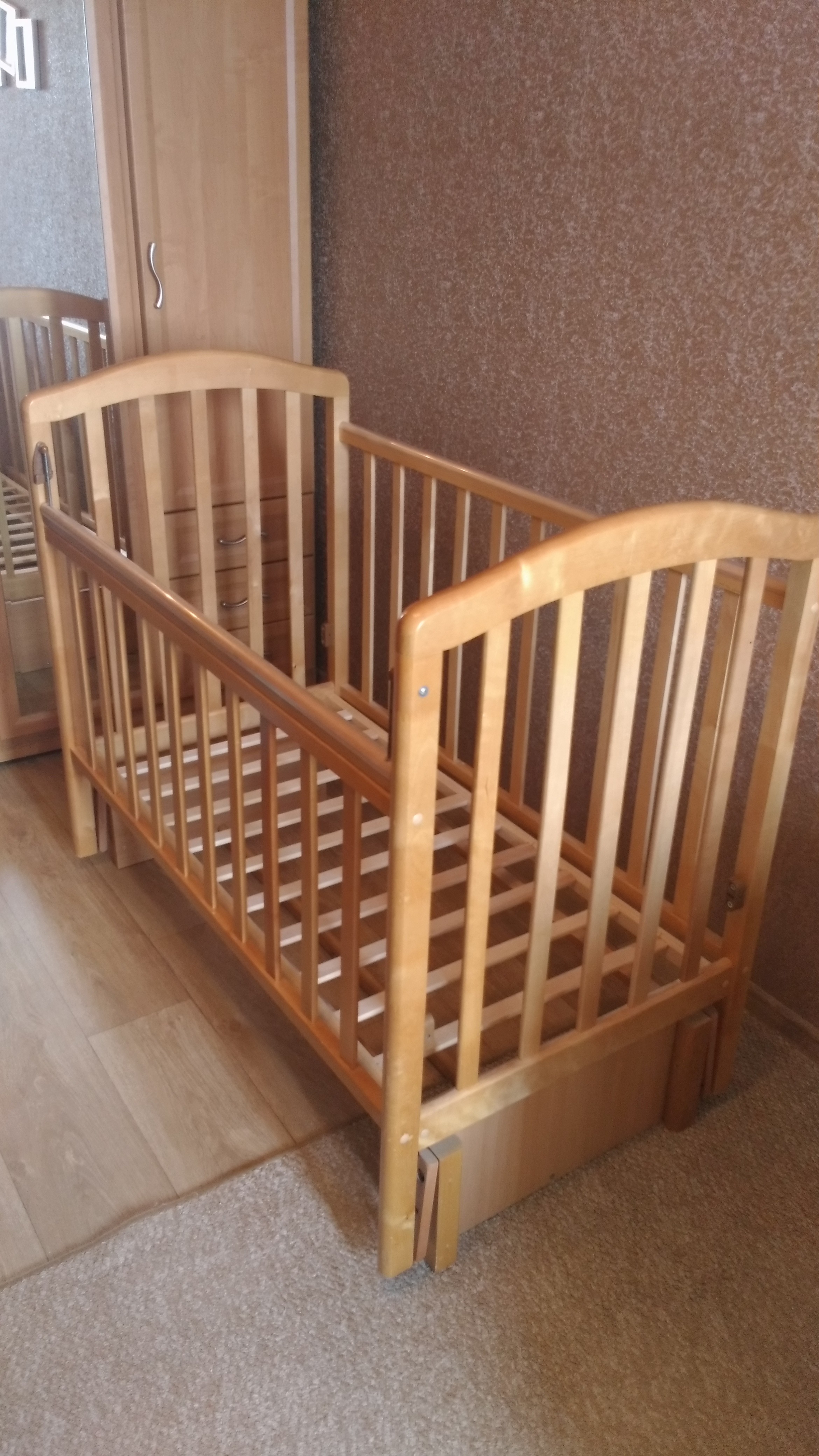 Не только легкость линий привлекает внимание покупателей к модели ЗОЛУШКА-5. Помимо экологичности и добротности у нее есть еще одно преимущество – продольный маятник качания, который доказал свою пользу и эффективность. Дно кроватки регулируется на двух уровнях высоты. Верхняя планка передней боковой стенки удобно опускается и поднимается, благодаря простому и надежному механизму. Кроватка выполнена из натуральной древесины. Березовый массив обработан нетоксичными лаками и красками. Хорошая обработка поверхности исключает шероховатости. Обрешетка боковин и опорных стенок выполнена из качественных округлых реек, расстояние между ними соответствует всем нормам безопасности. Подобная конструкция обеспечивает качественную вентиляцию и проветривание матраса, на чем так настаивают педиатры. Материал массив березы Вес (кг) с упаковкой 17,8 кг Продольный маятник Откидная планка Уровней ложа 2 Спальное место (см) 120х60 Цена 2500Р, возможен торг у капота. Не бита, не крашена.
