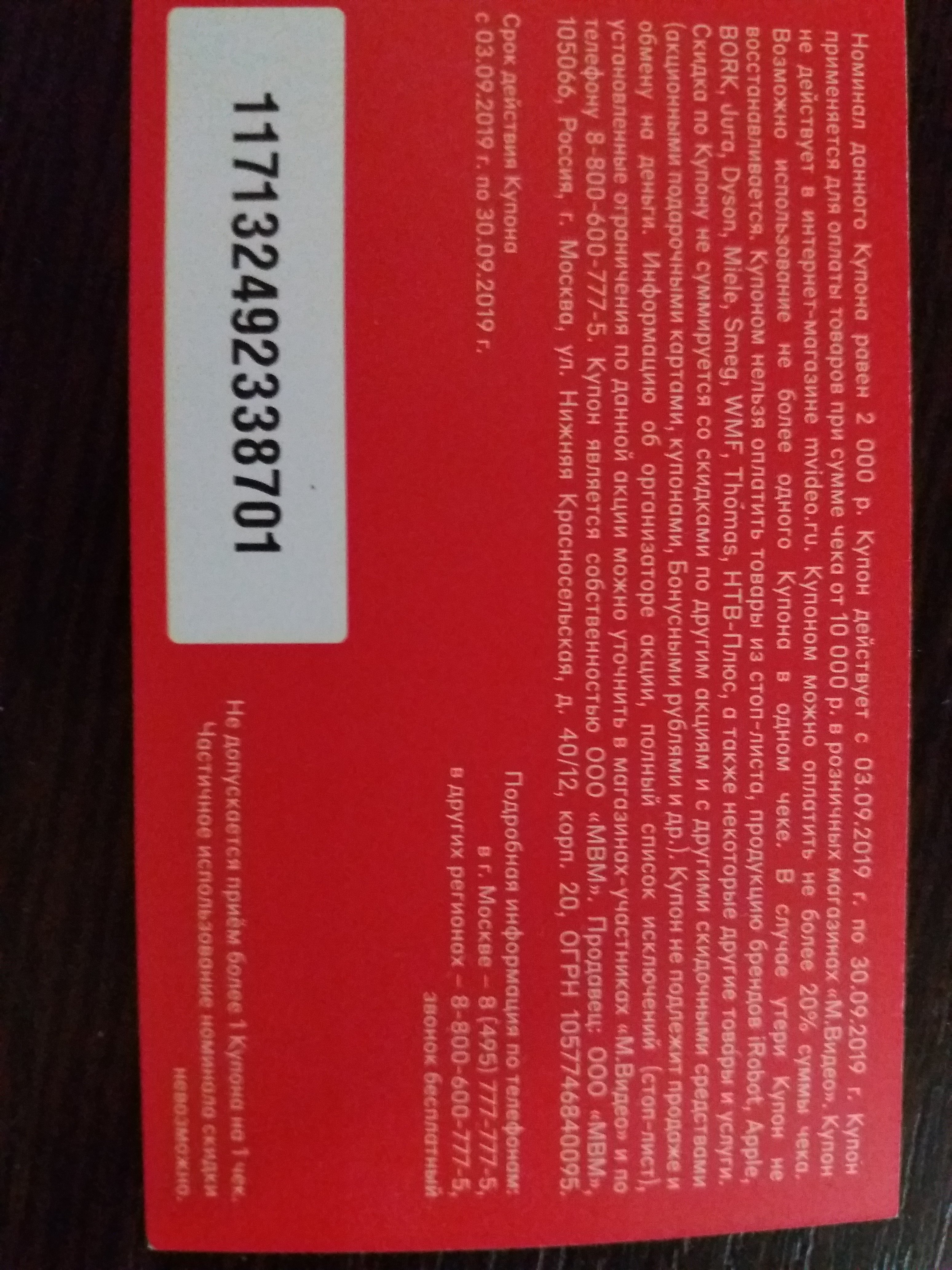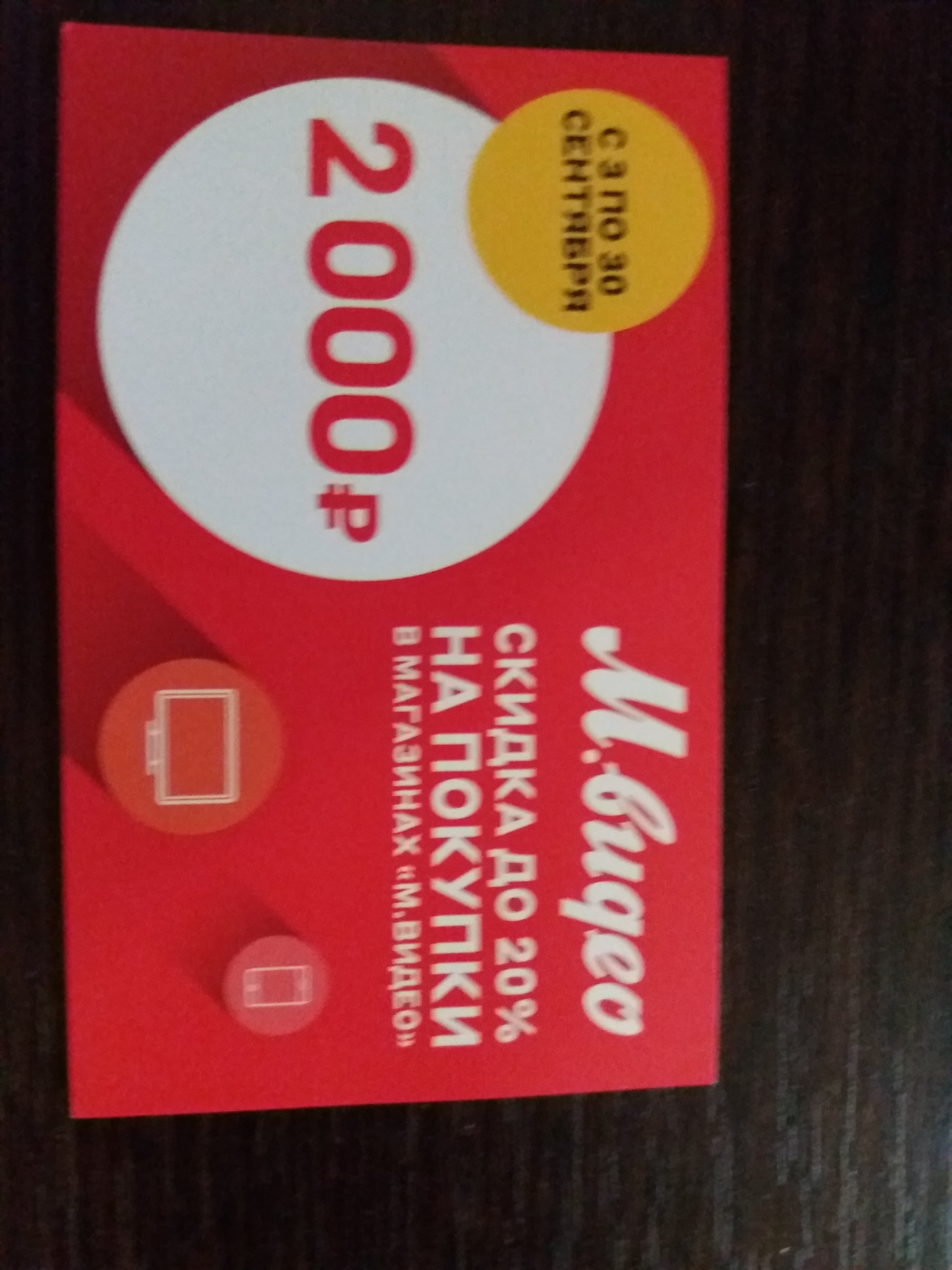 Действие купона с 03.09.19 по 30.09.19 Номинал 2000р действует при покупке от 10000р Покупки не планировал, так что кому надо пользуйтесь Кто использует отпишитесь