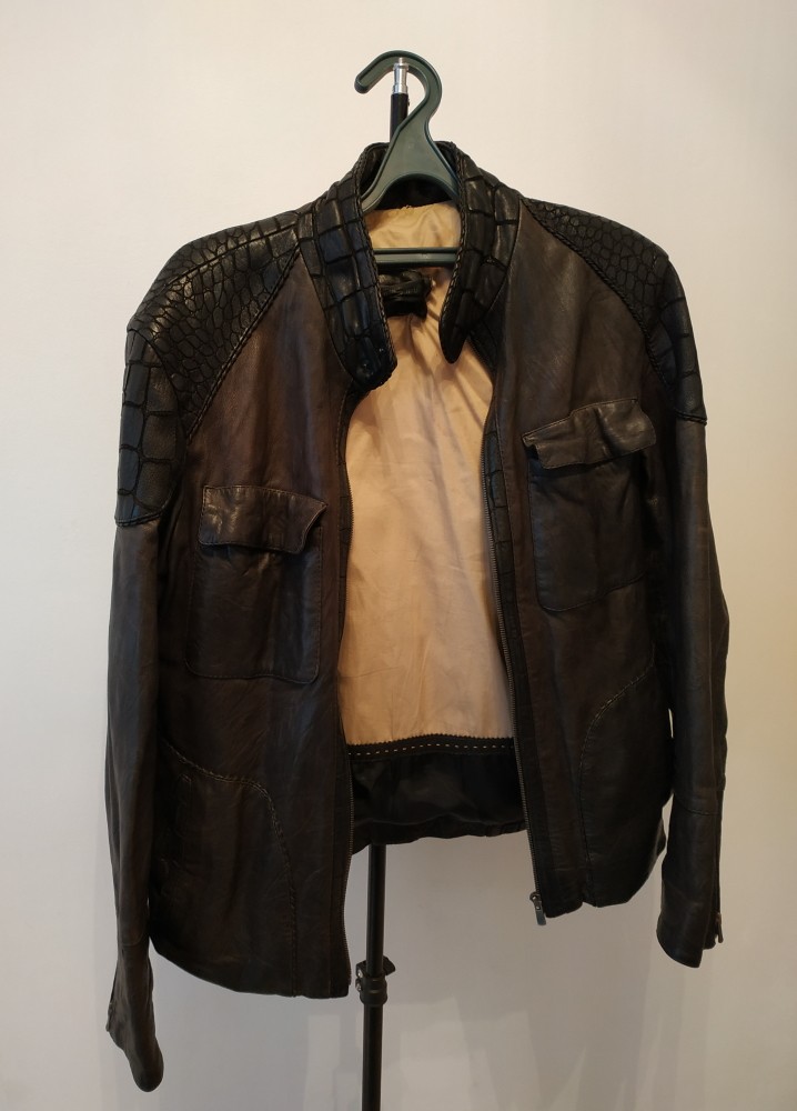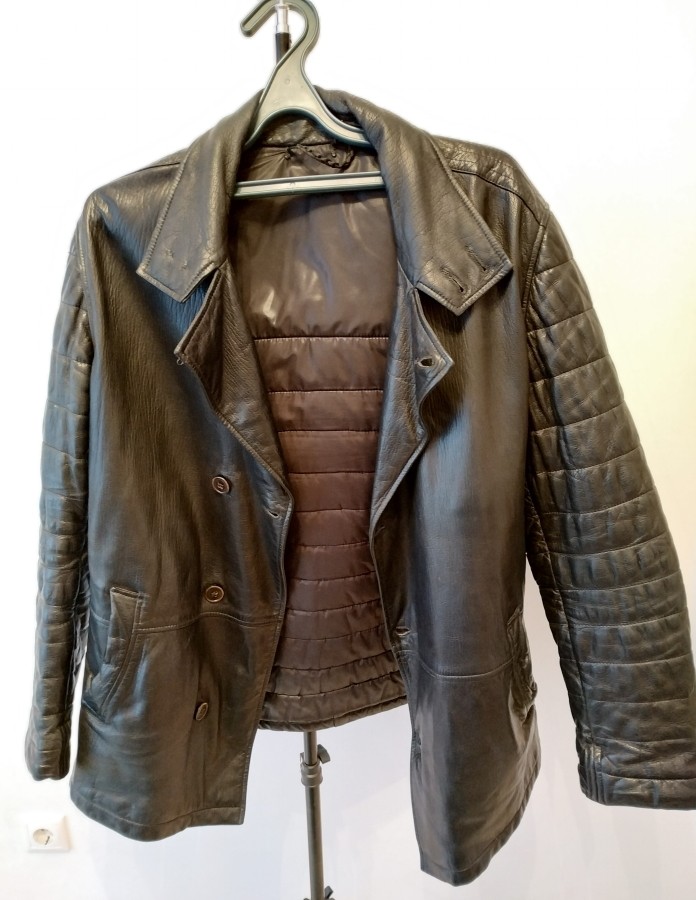 Кожаная мужская куртка Levinson, размер 50, верх натуральная кожа 100%, подкладка ацетат, молния. 2 внутренних кармана. Состояние хорошее. Цена 960 рублей. Кожаная мужская куртка Tirelli Sympatiya, размер 50-52. Верх натуральная кожа, подкладка синтетика, пуговицы. 2 внутренних кармана. Состояние хорошее. Цена 870 рублей. В качестве бонуса к одной из курток (первому покупателю) - хлопковая мужская летняя рубашка Sainge на молнии, 50 - 52. +7-919-797-59-57, КрОкт.