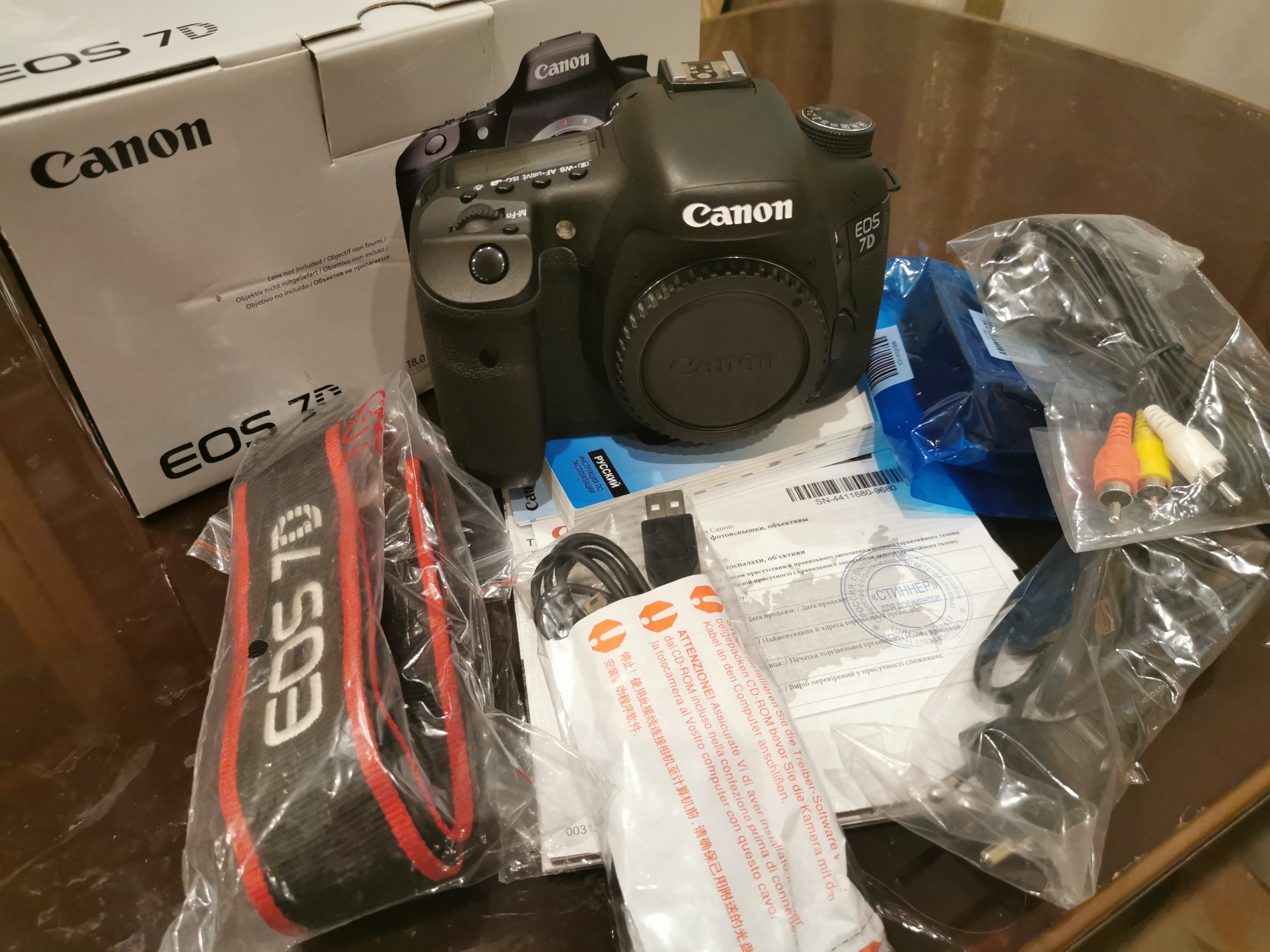 Продаю камеру Canon 7D Body. Полный комплект. В отличном состоянии. Пробег чуть больше 5 500 снимков. Продаю из-за покупки полнокадровой камеры. Цена - 30 000 руб. Обоснованный торг.