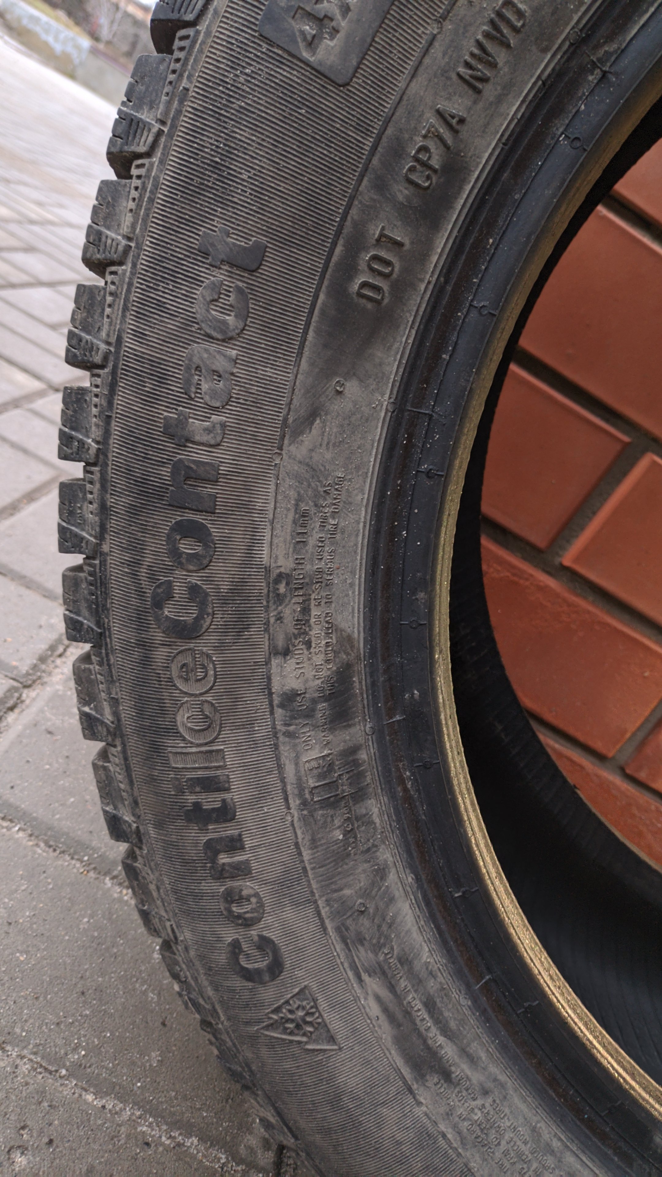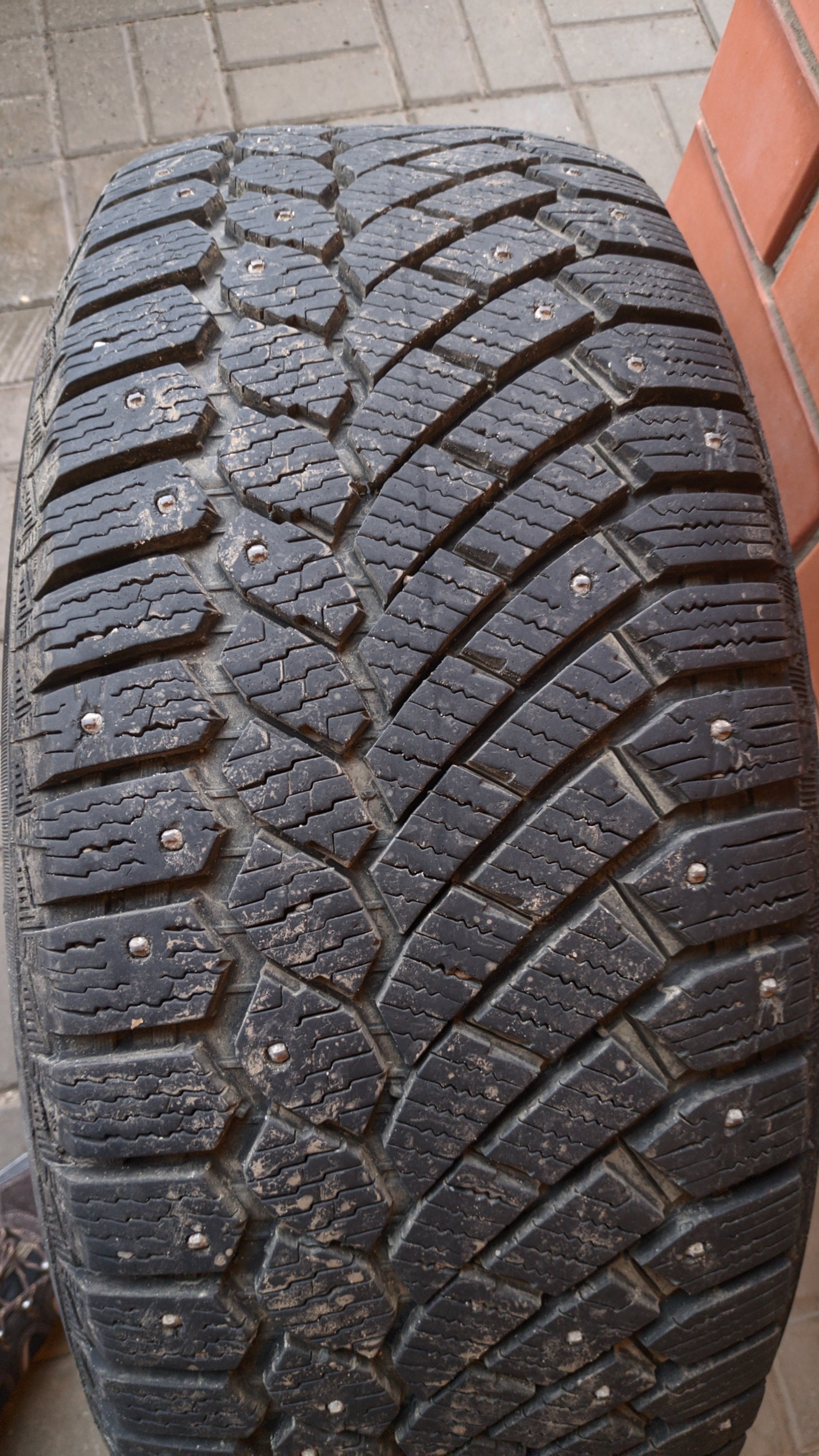 Продается Комплект шипованной резины Сontinental IceContact R17 235/55. Протектор в норме, износ равномерный, 85-90% шипов на месте. На одном балоне латка (видно на фото), с этой латкой проездил 1,5 года. Колеса не спускали. Остальные 3 балона без замечаний. Цена 4500 руб.