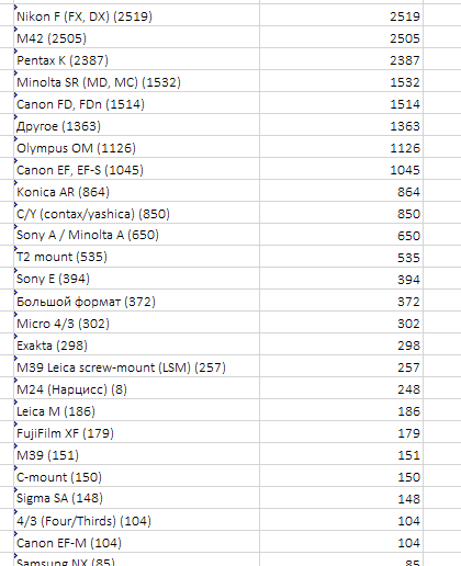В природе - да. Но наборы оптики - разные, больше всего ассортимент на кэнон/никон. И у конкретного фотографа с зеркалкой обычно оптика есть и менять байонет значит менять весь набор. А вообще метко подмечено Синдром фотографа