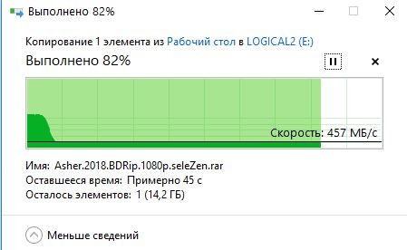 Это копирование с tlc смартбай сплеш 1тб на самсунг про 512гб а это с самсунг на смартбай=) Как видим все работает на приемлемых скоростях