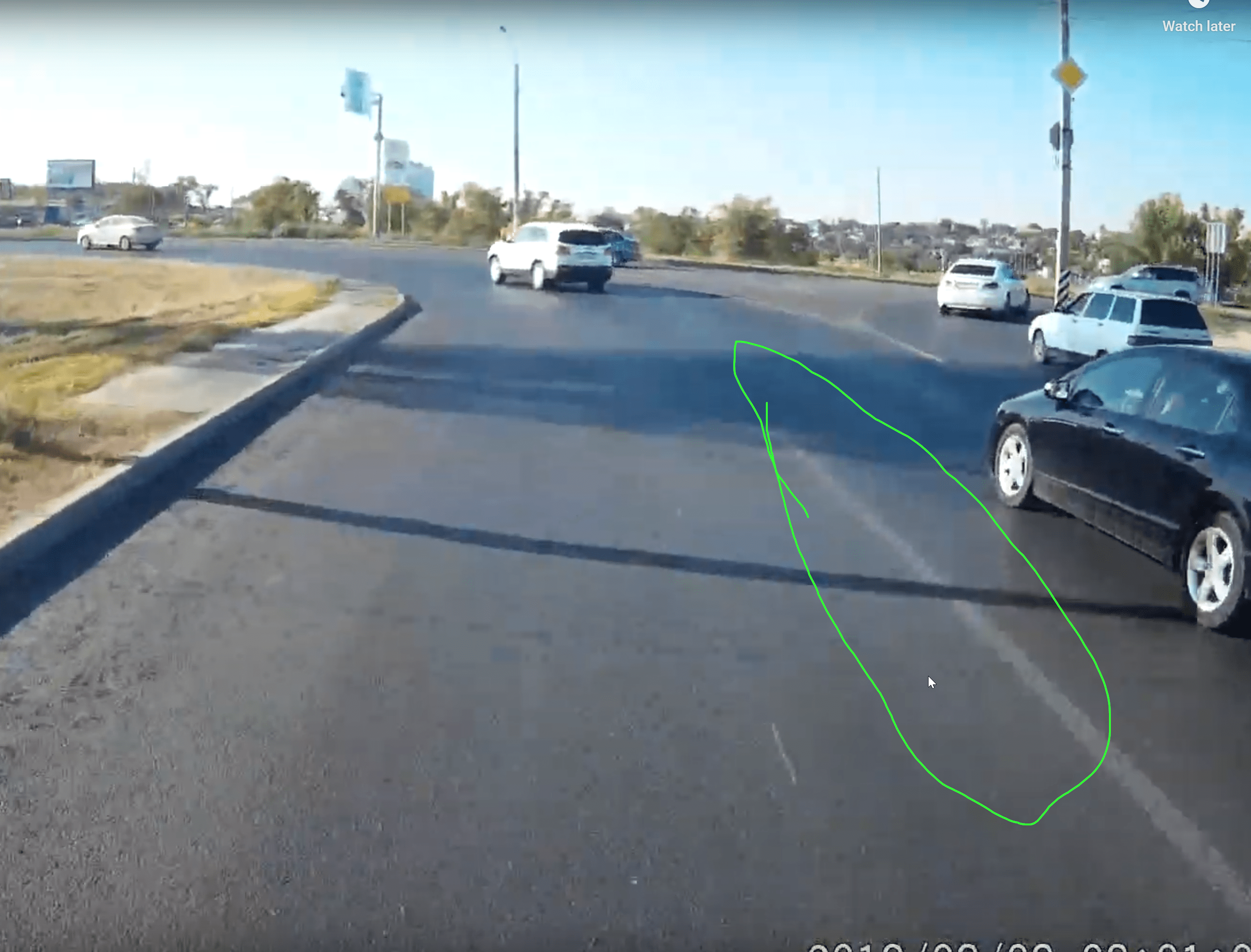 @Ник Маки, она его конечно резанула, но он тоже хорош.. но там каждый день куча таких чудаков так проезжают этот круг . И их не смущает , что они разметку нарушают... а может Хонда знала что он так попрет, и специально его резанула...