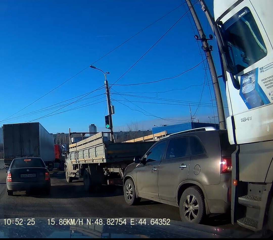 На въезде в город со стороны плотины большегруз впихал что-то типа внедорожное под бычка. В результате 40 минут там потерял.