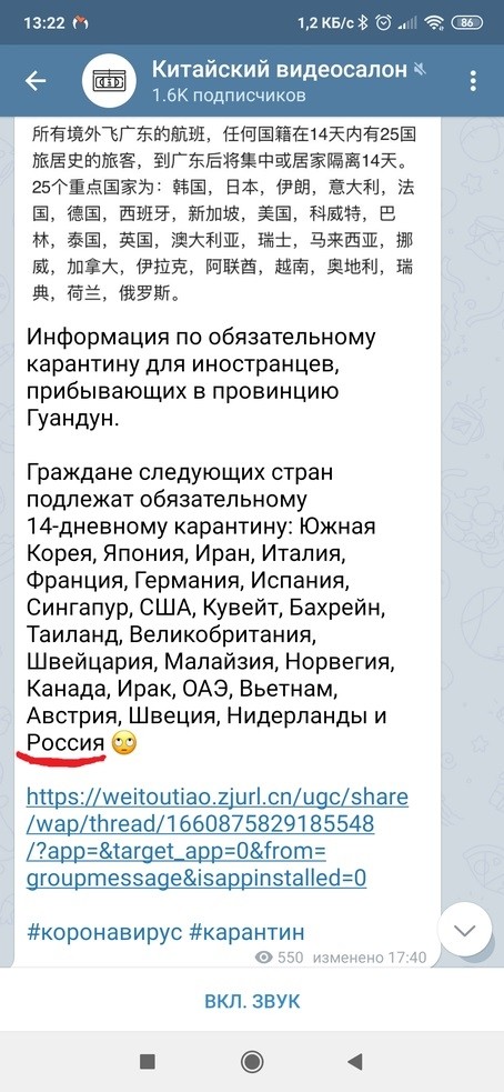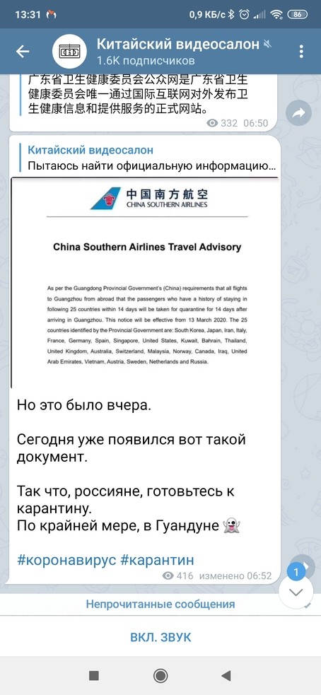 Тем временем кровные узы проверяются коронавирусом ))) по ситуации с родственницей я подумала и неожиданно приняла жесткое решение: у неё виза китайская до лета, живет она там в шикарной квартире во дворе с бассейном, а работы нет и платить за шикарную хату нечем. Посему, как пережившей эпидемию, я предложила ей не искушать судьбу (тем более что она в группе риска по легочной патологии), сдать билет и переехать в более скромное жильё, либо найти работу у какой нить бабульки с проживанием за уборку-готовку, например, и переждать. Правда, человек, живя в Китае, начинает забывать все прелести нашей родины и опасность кажется призрачной... родственница считает, что «аэропорты пустые и рейсы полупустые», так что она точно не заболеет... на что я пожелала ей удачи, у меня семья и мне надо их беречь и на время карантина в таком случае пусть сама себя пристраивает, если недооценивает ситуацию. Считаю очень глупой идею ехать в Россию, тем более, как выяснилось, она-таки хочет в России лишь отсидеть карантин и сразу двинуть в другую страну на заработки... я решила в этом не участвовать. Вот такой я родственник... может и передумаю, конечно. Но не хочу, чтобы внезапно она оказалась с чемоданами у нас под дверью и грустными глазами и у меня не было выбора кроме как открыть дверь... если человек решил рисковать, пусть разгребает сам...
