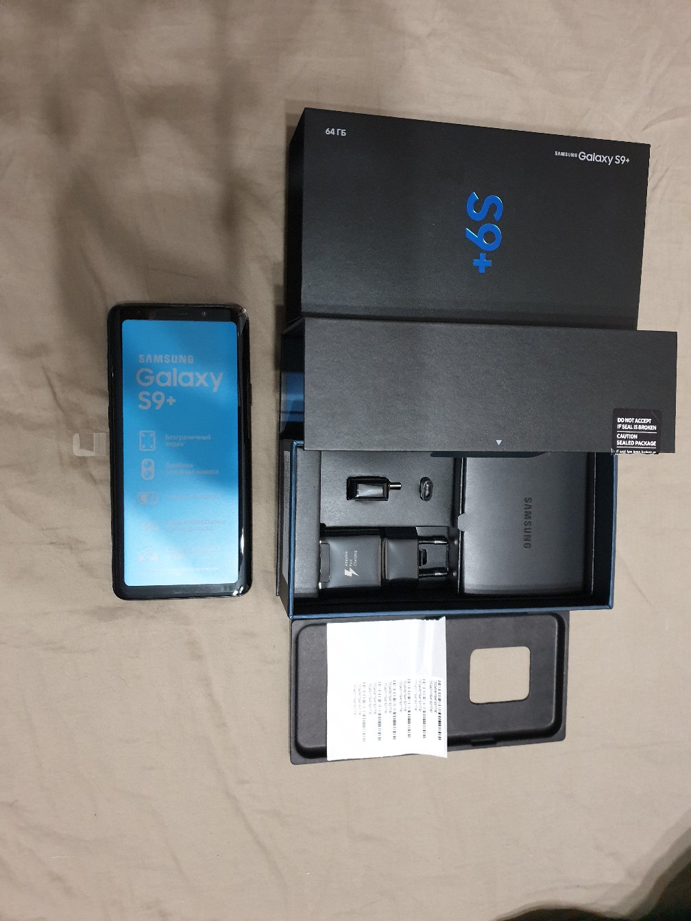 Продается НОВЫЙ, не юзанный Samsung S9+ 64Gb РСТ. Полный комплект, все в пленках, гарантия, дата производства по серийнику ноябрь 2019г. Выслушаю Ваши предложения.